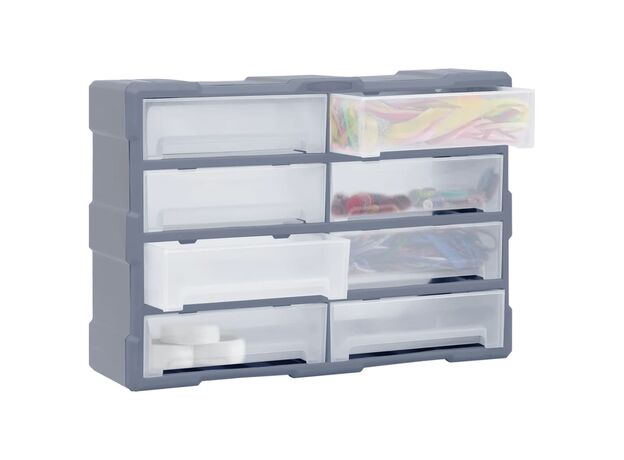 Acest organizator cu 18 sertare medii este un element absolut necesar, fiind conceput pentru a depozita în ordine o mare varietate de articole. Poate fi folosit și ca o cutie pentru articole de cusut sau pentru a păstra cuie.