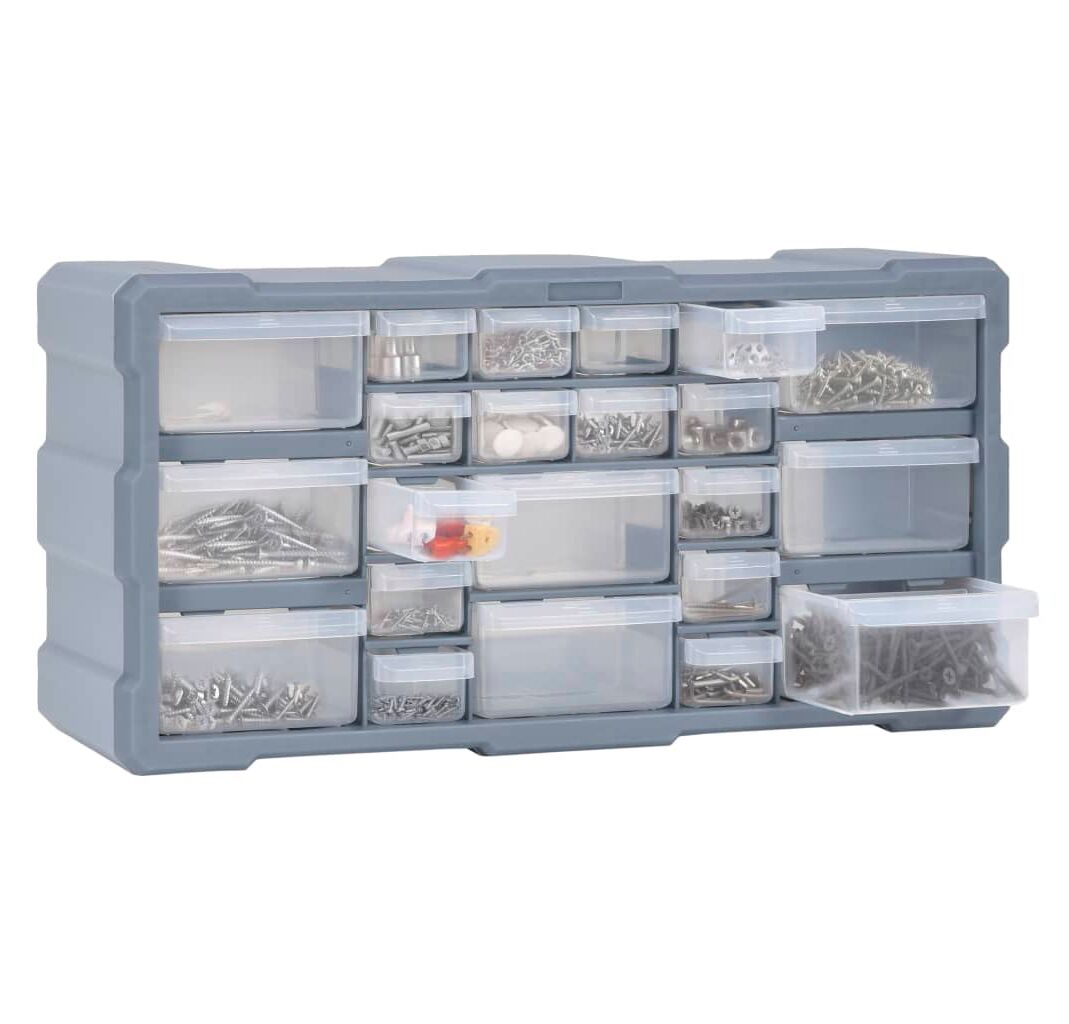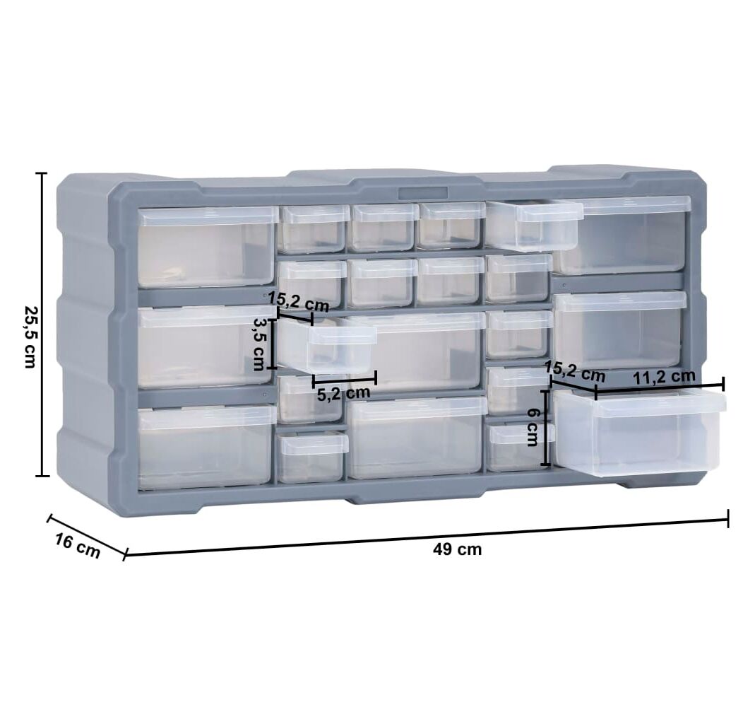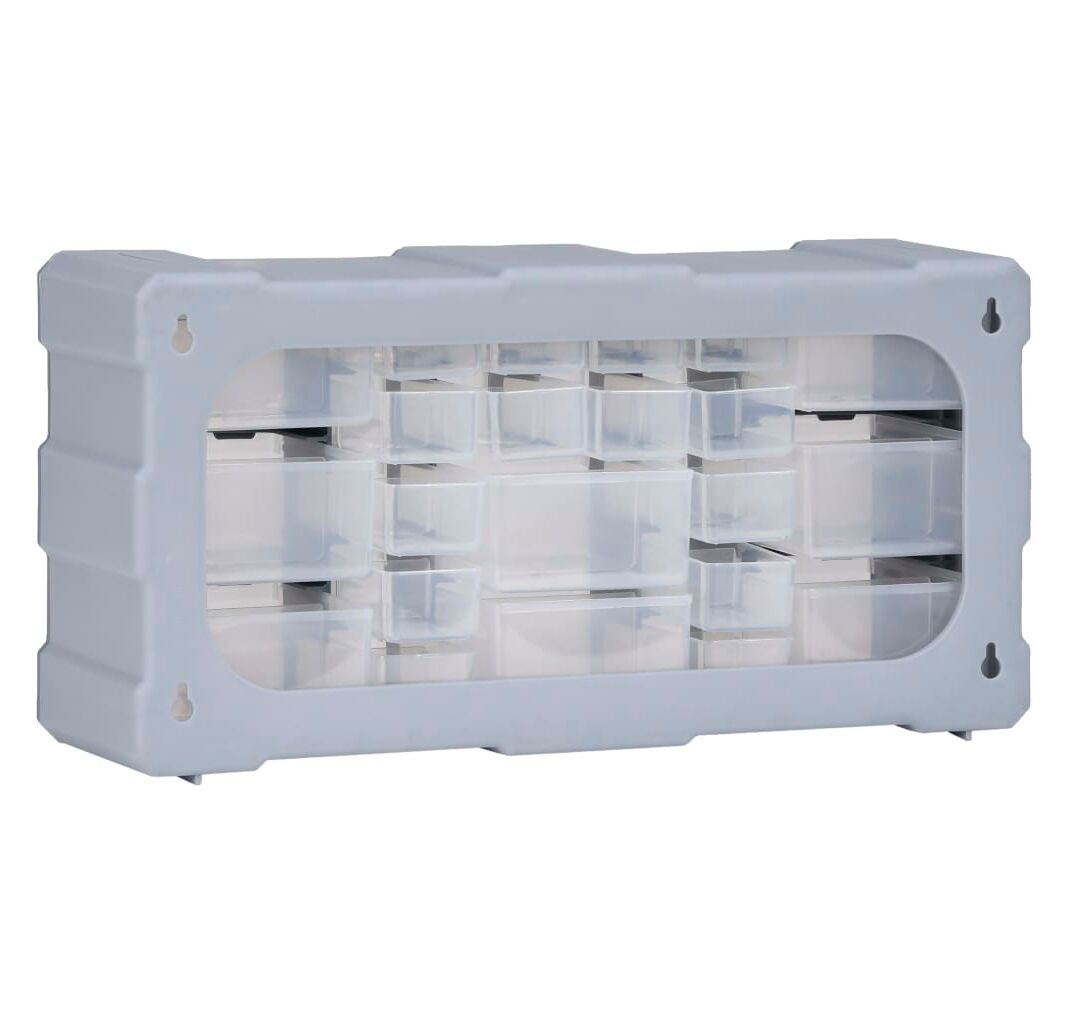 Acest organizator cu 22 de sertare este un element absolut necesar, fiind conceput pentru a stoca cu grijă o mare varietate de articole. Poate fi folosit și ca o cutie pentru articole de cusut sau pentru a stoca cuie.