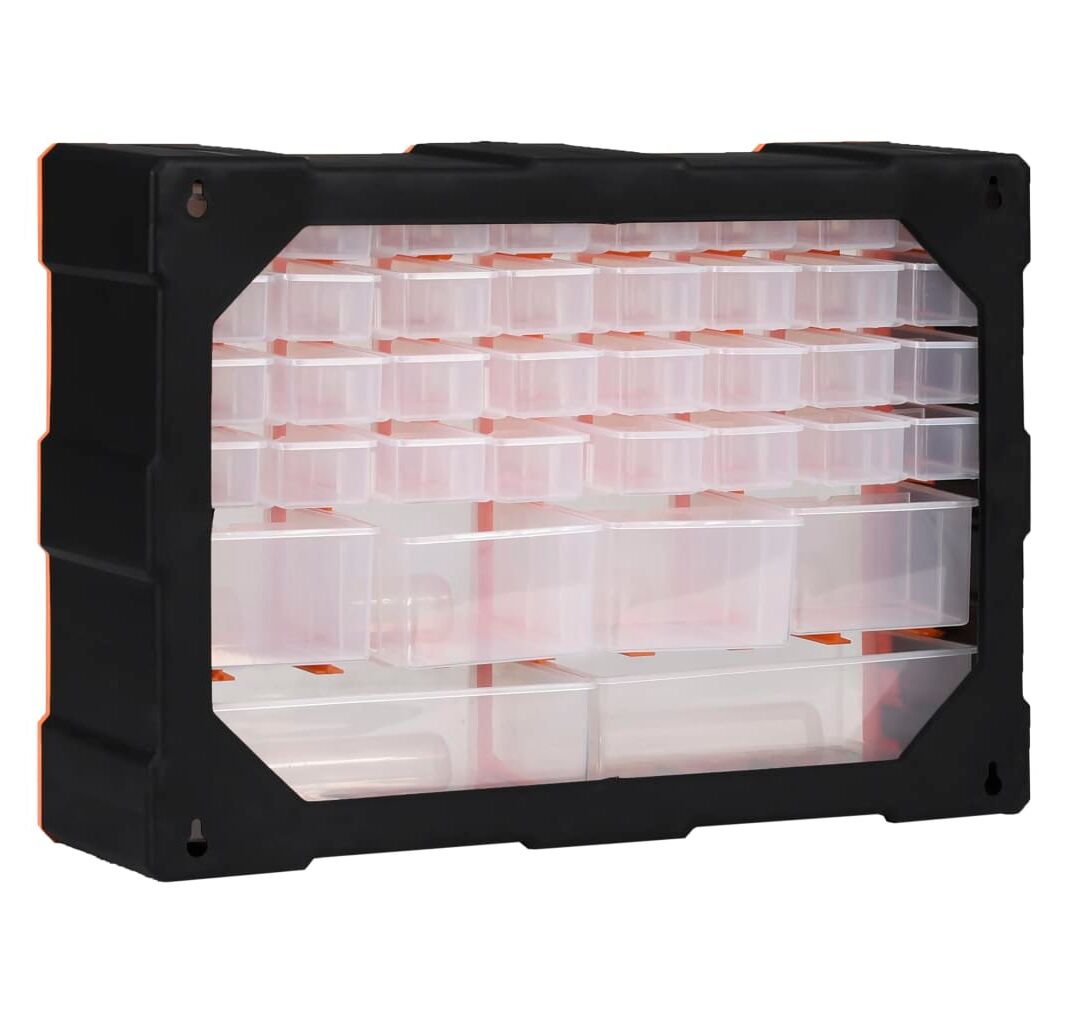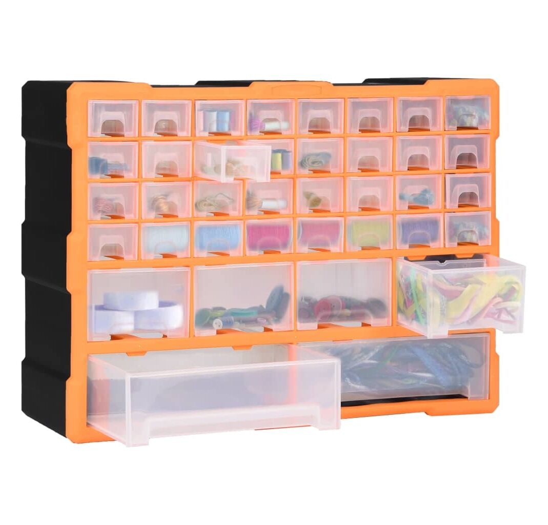 Acest organizator cu 38 de sertare este un element absolut necesar, fiind conceput pentru a stoca cu grijă o mare varietate de articole. Poate fi folosit și ca o cutie pentru articole de cusut sau pentru a păstra cuie.