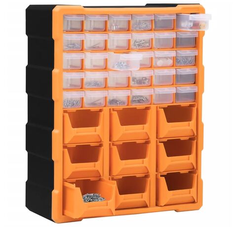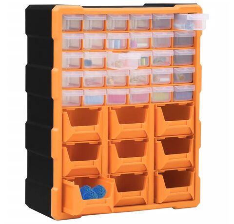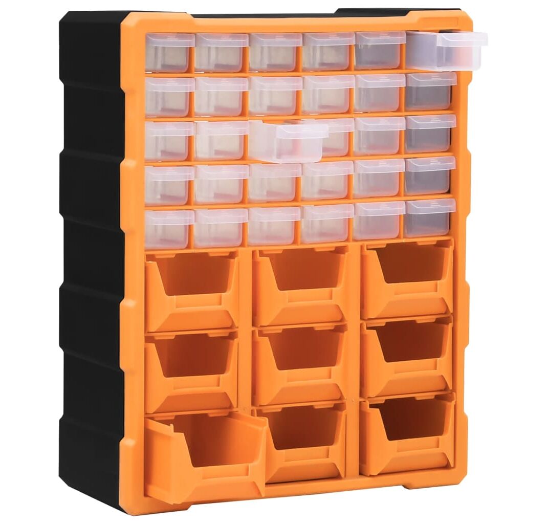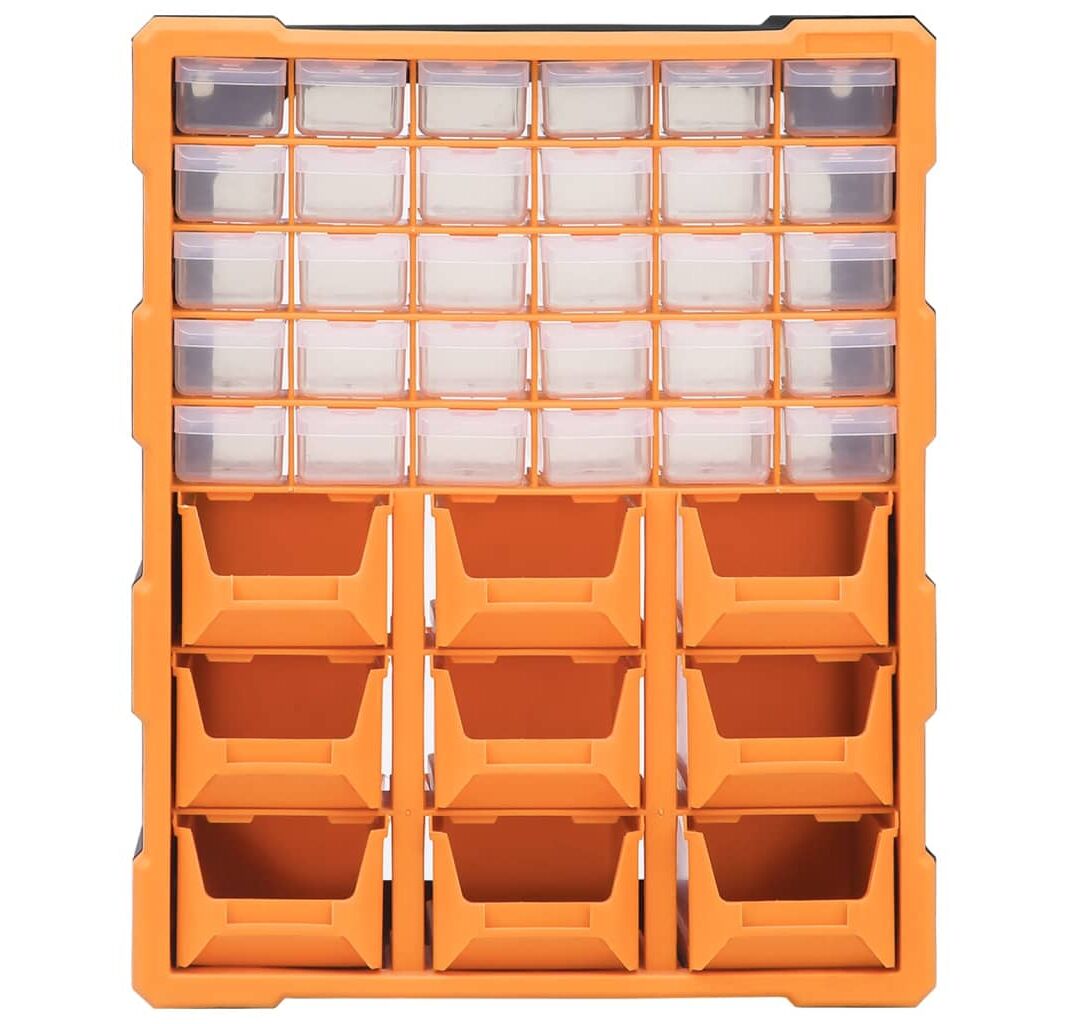 Acest organizator cu 39 de sertare este un element absolut necesar, fiind conceput pentru a stoca cu grijă o mare varietate de articole. Poate fi folosit și ca o cutie pentru articole de cusut sau pentru a păstra cuie.