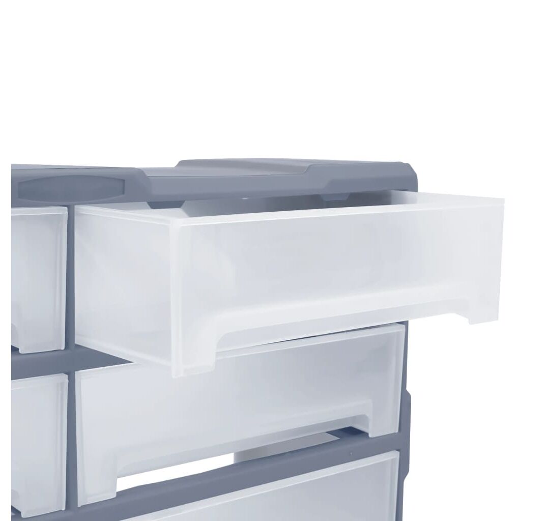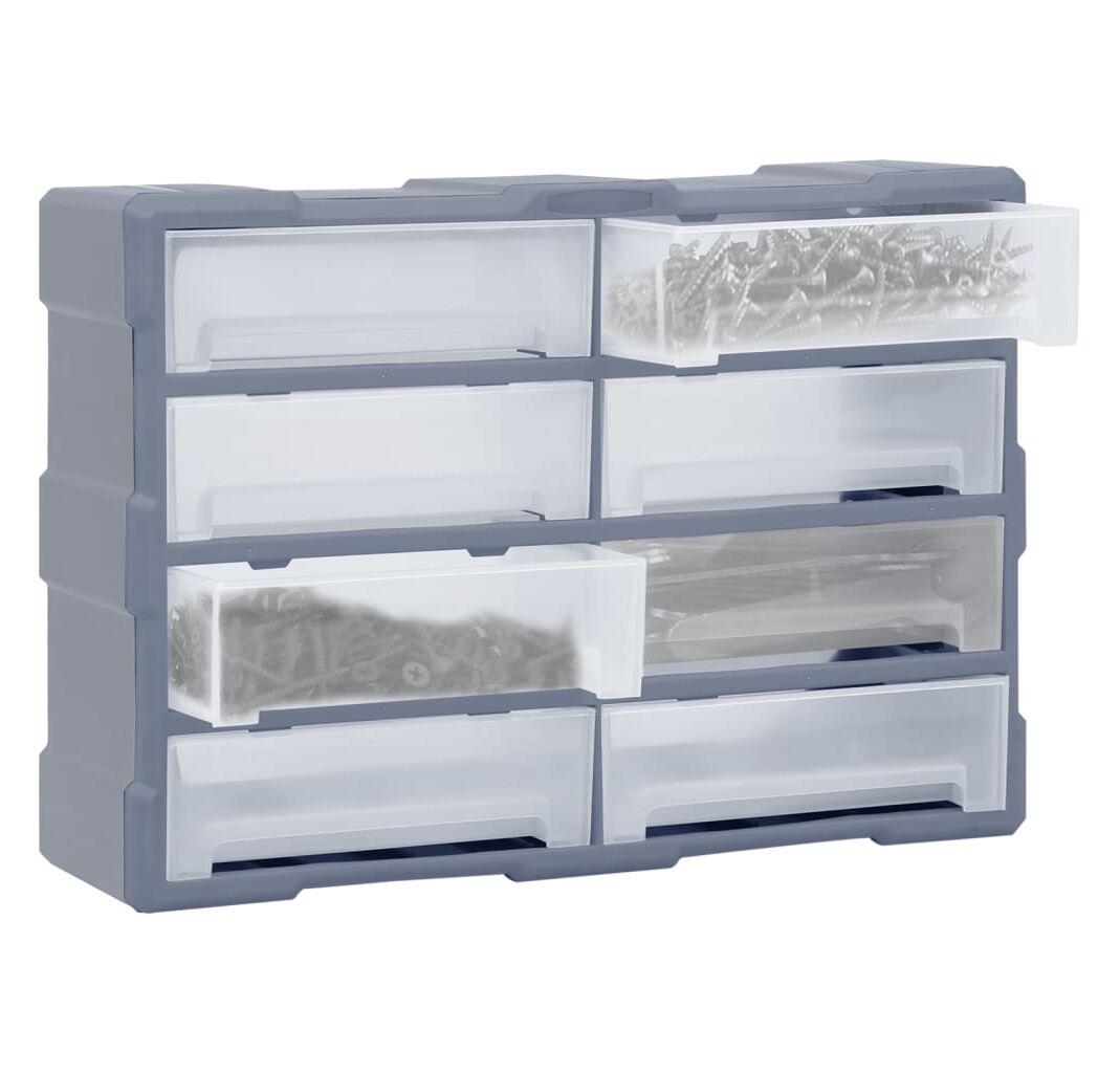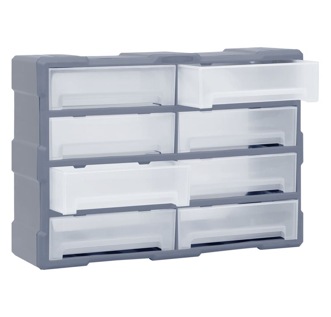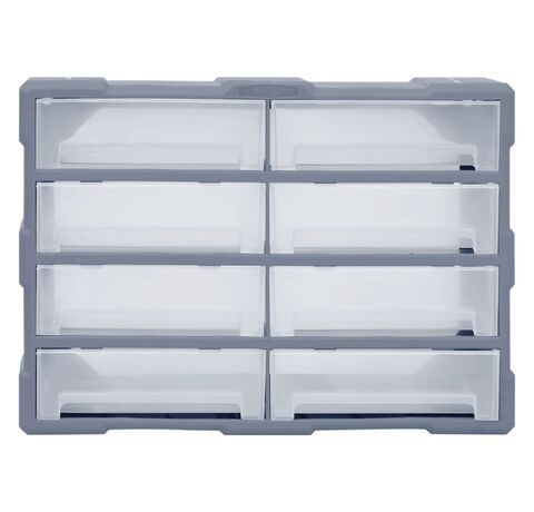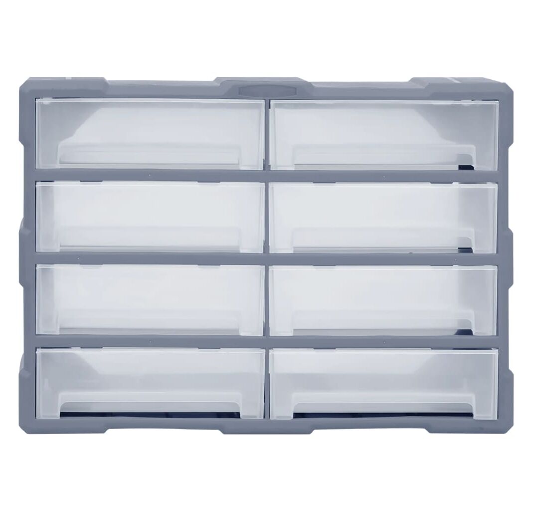 Această unitate de stocare conține 8 sertare mari, pentru a oferi mai mult spațiu de stocare. Vă menține organizate și la îndemână sculele manuale și accesorii precum elementele de fixare. Dulapul pentru scule este fabricat din plastic rezistent la impact, care este atât durabil, cât și stabil. Sertarele sunt realizate din plastic transparent, astfel încât să puteți identifica rapid conținutul. Cutia de lucru este ideală pentru depozitarea piulițelor, șuruburilor, bolțurilor, cuielor, pieselor și elementelor de fixare generale.