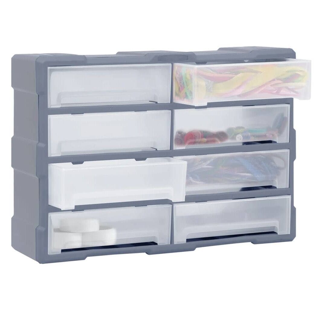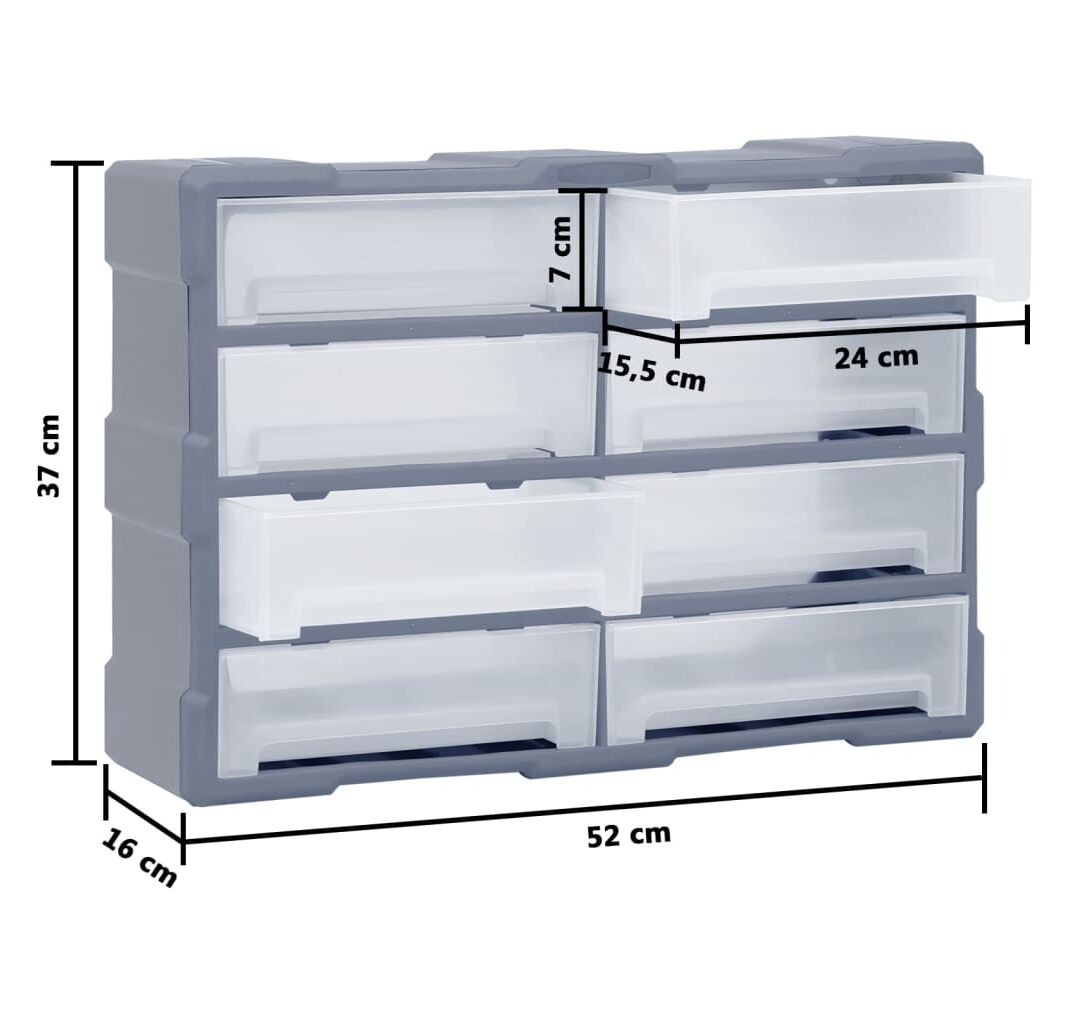 Acest organizator cu 8 sertare mari este un element absolut necesar, fiind conceput pentru a stoca cu grijă o mare varietate de articole. Poate fi folosit și ca o cutie pentru articole de cusut sau pentru a păstra cuie.