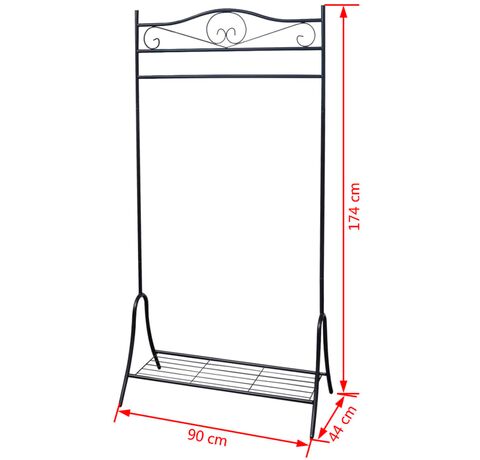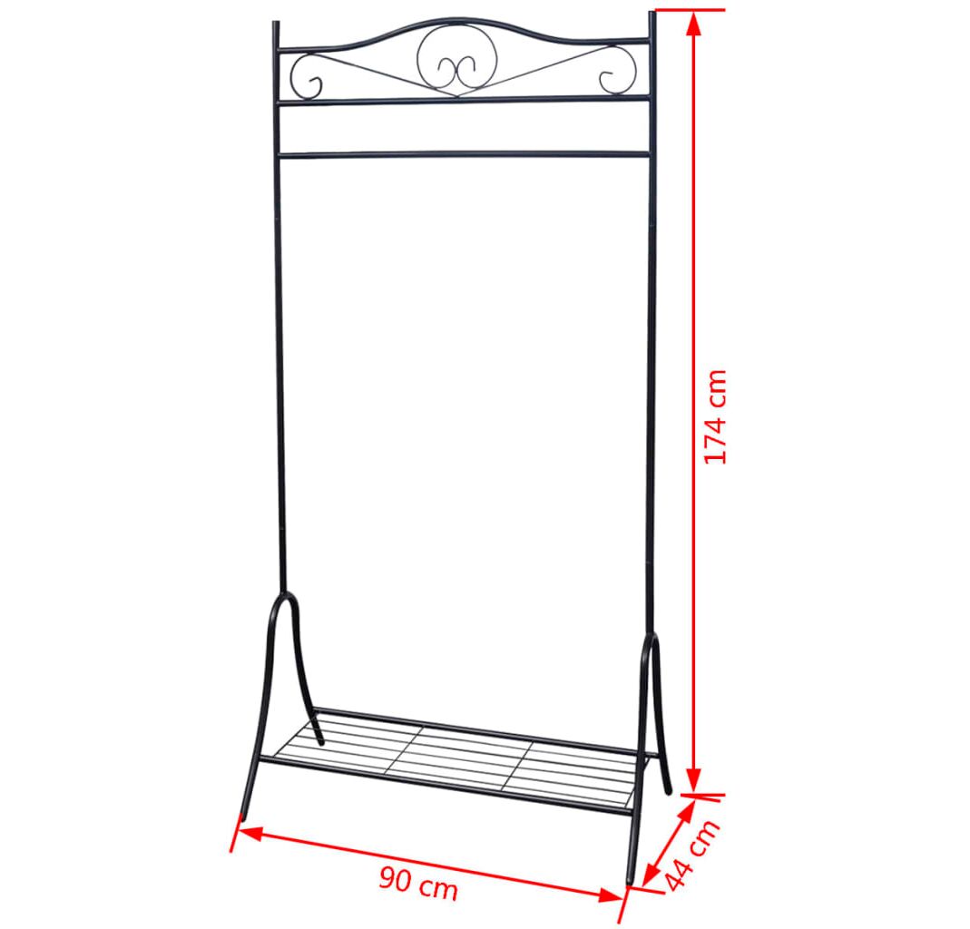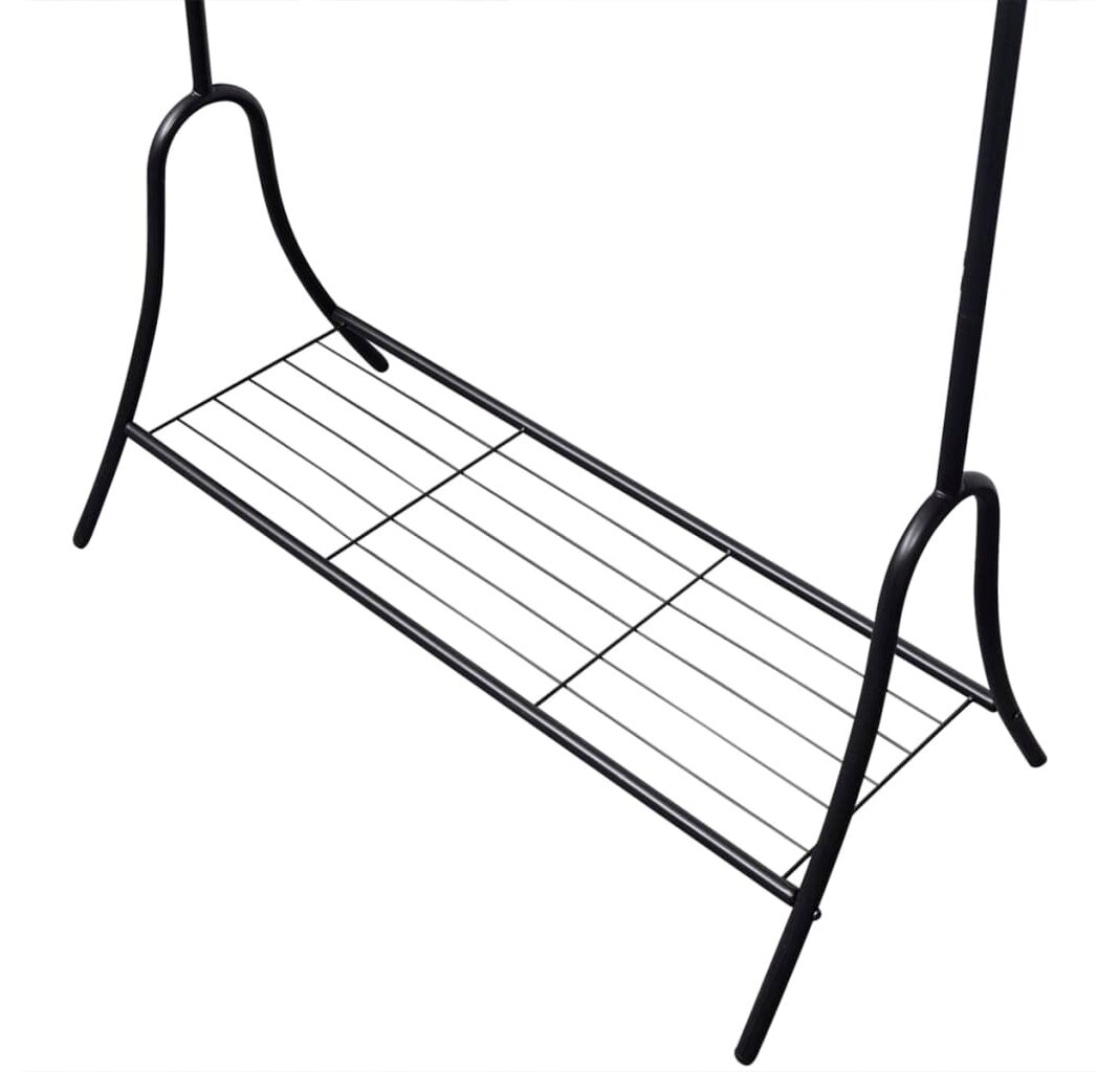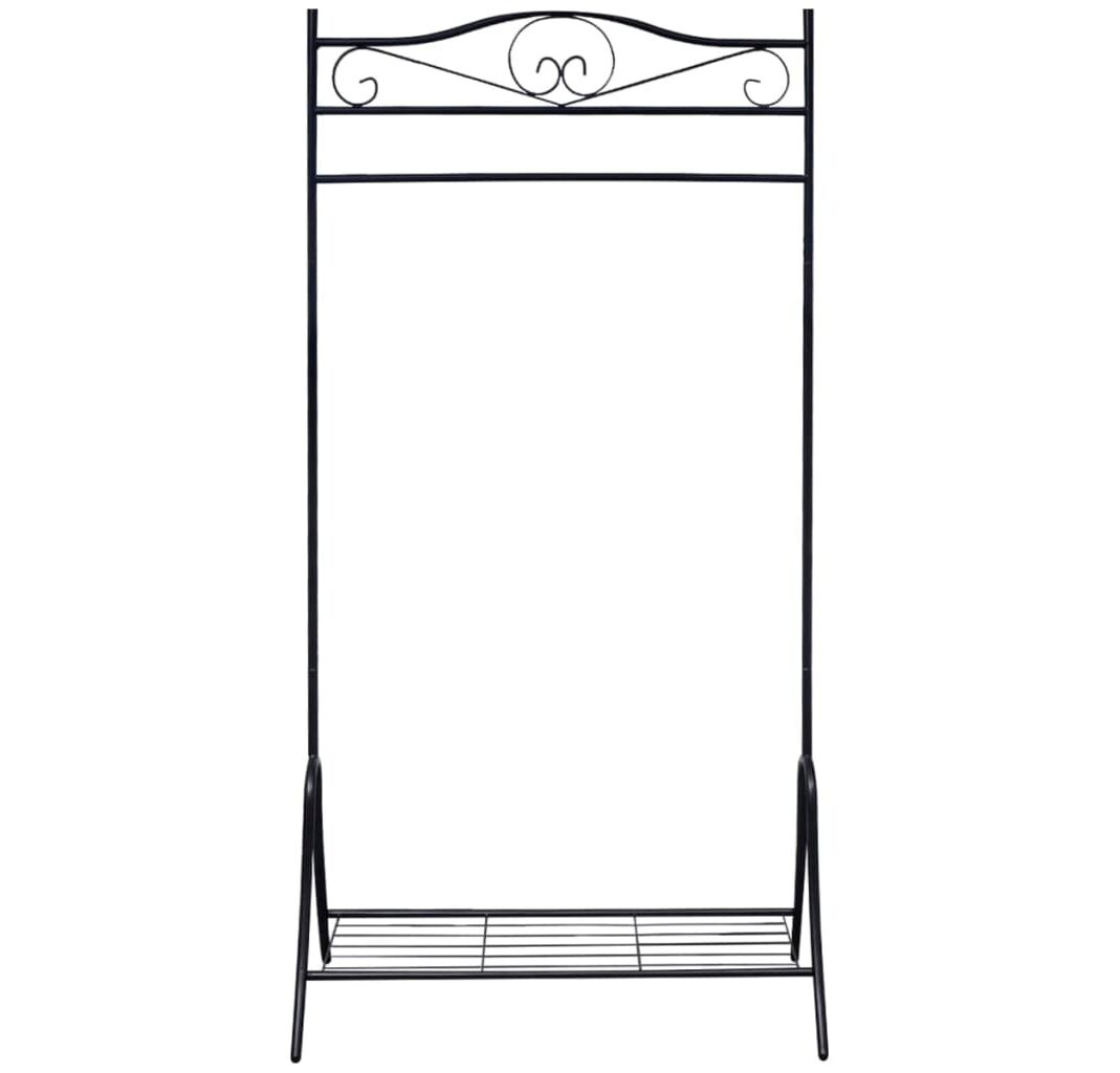 Detaliile ornamentale elegante fac acest ca acest suport pentru haine să fie decorativ și practic. Acest suport pentru articole de îmbrăcăminte are o structură robustă din oțel, care îl face ușor, dar puternic. Raftul de jos poate fi utilizat pentru a depozita pantofi sau coșuri.