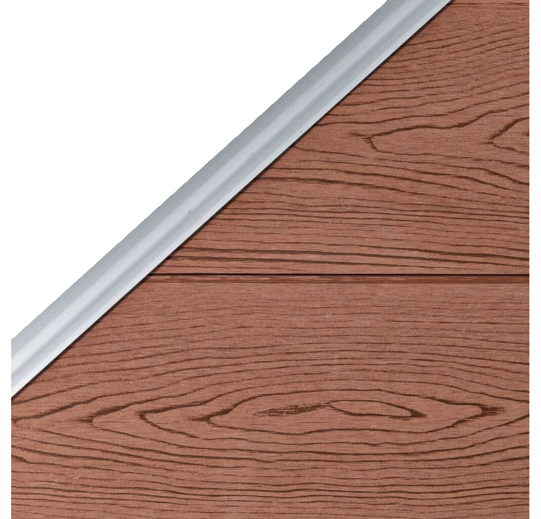 Gardul de grădină are un imprimeu de lemn pe o parte și un imprimeu simplu pe cealaltă parte, astfel încât să puteți alege designul care vă place cel mai mult. Panoul de gard din compozit lemn-plastic este foarte durabil și va rămâne neafectat de razele UV, umiditatea ridicată și fluctuațiile de temperatură. Datorită profilului superior din aluminiu, panourile sunt strâns atașate unul de celălalt, aspect care le crește rigiditatea și rezistența la impact.