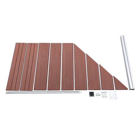- Material: WPC (compozit lemn-plastic), aluminiu, oțel