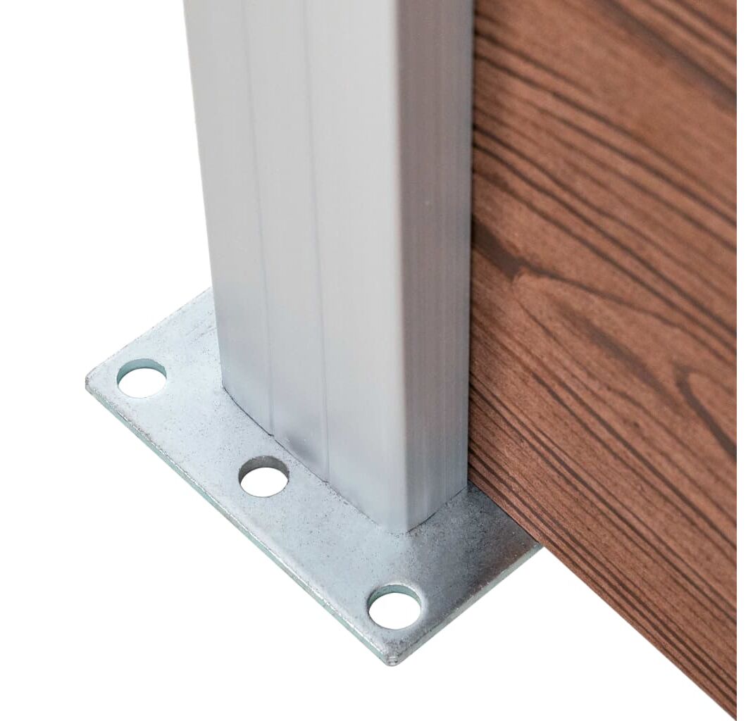 Gardul de grădină are un imprimeu de lemn pe o parte și un imprimeu simplu pe cealaltă parte, astfel încât să puteți alege designul care vă place cel mai mult. Panoul de gard din compozit lemn-plastic este foarte durabil și va rămâne neafectat de razele UV, umiditatea ridicată și fluctuațiile de temperatură. Datorită profilului superior din aluminiu, panourile sunt strâns atașate unul de celălalt, aspect care le crește rigiditatea și rezistența la impact.