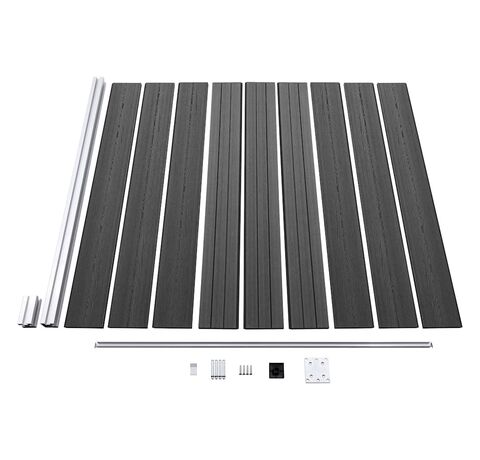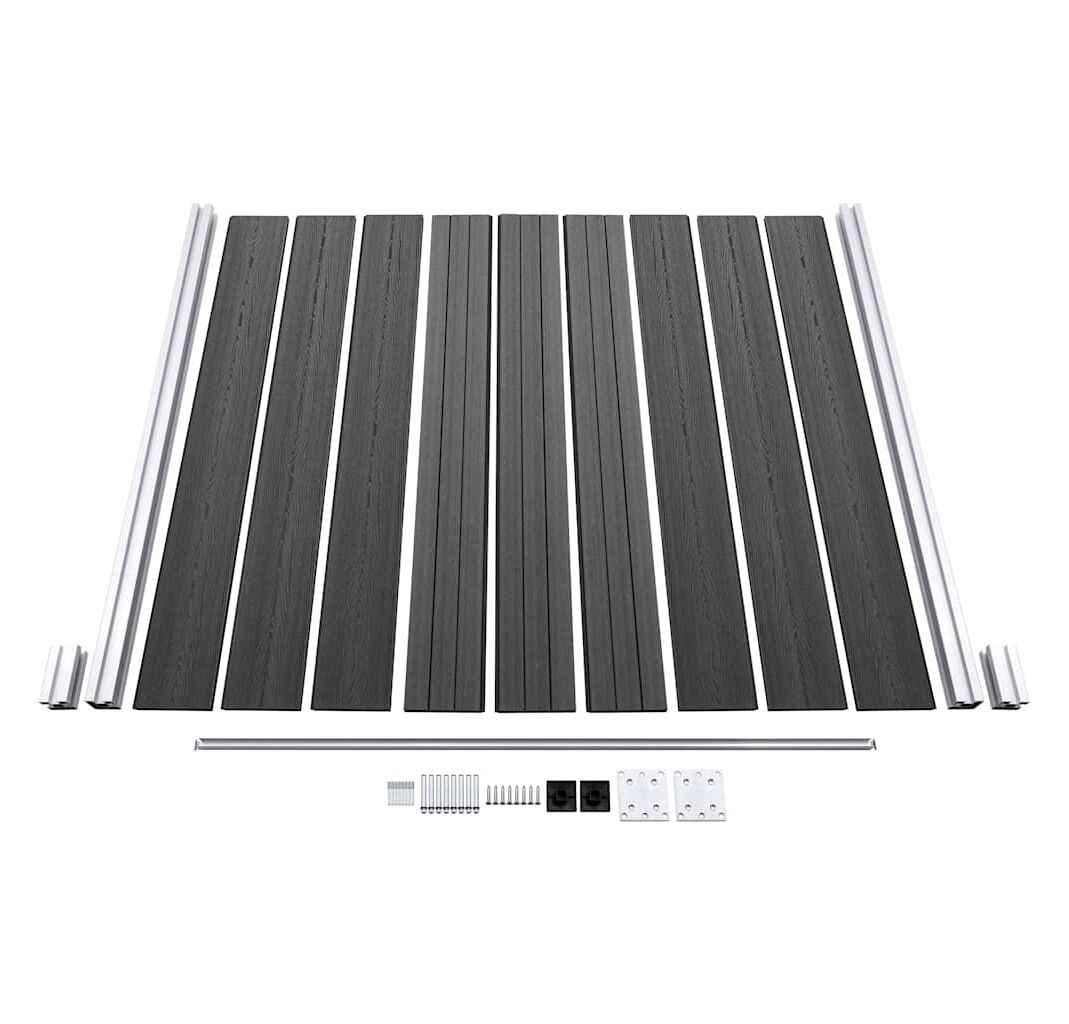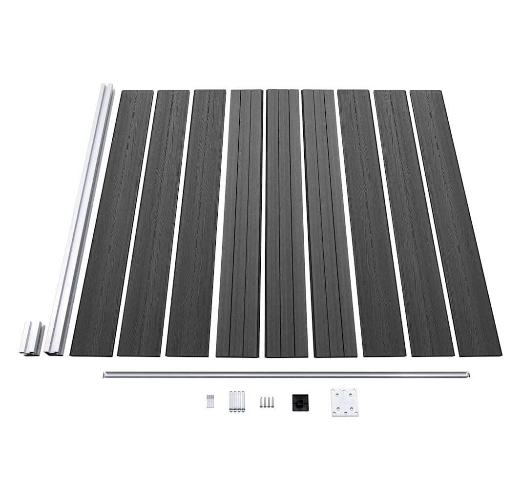 • Material: WPC (compozit lemn-plastic), aluminiu, oțel