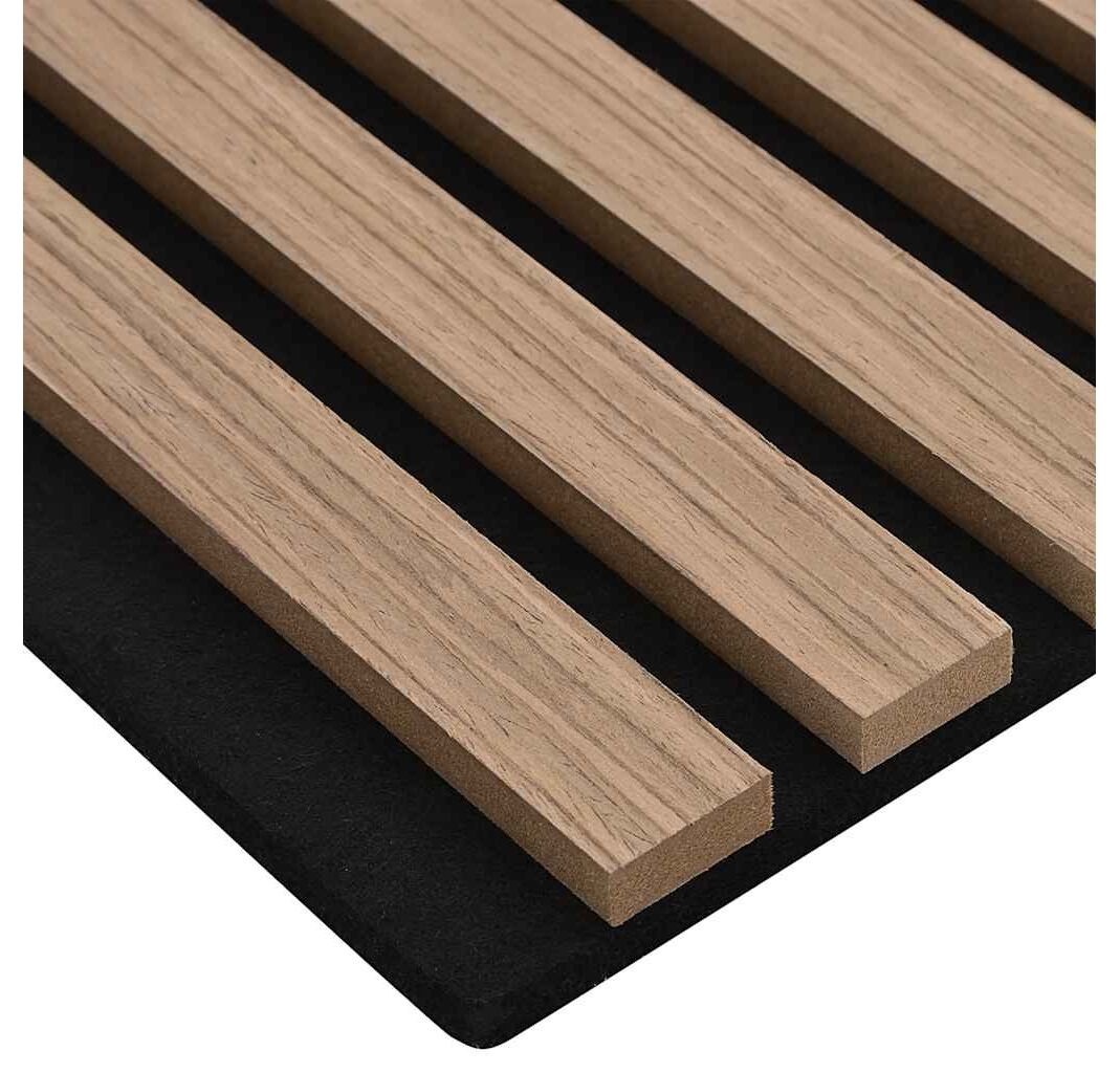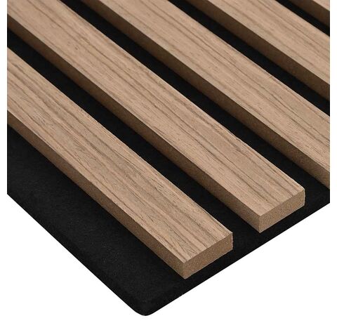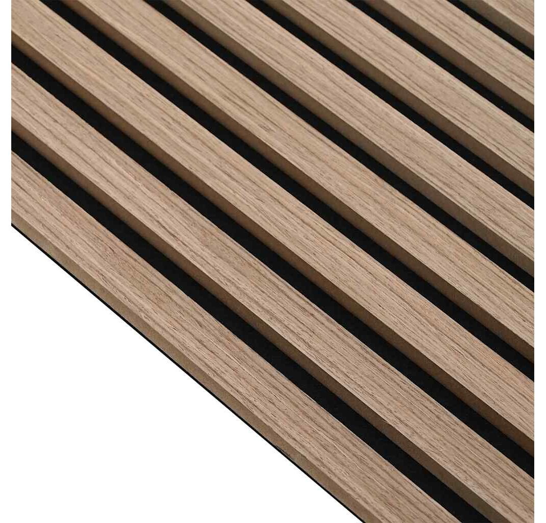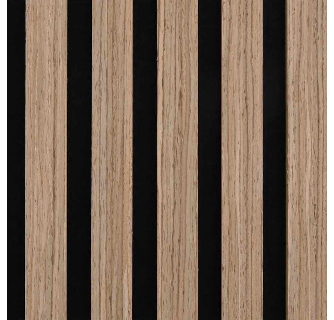 - Plăcut din punct de vedere estetic: designul cu șipci face ca panourile să fie nu numai funcționale, ci și atrăgătoare vizual. Lamelele, cu furnir de stejar, creează un aspect natural și cald, adăugând o notă de eleganță, oferind în același timp performanță de anulare a zgomotului în orice cameră.