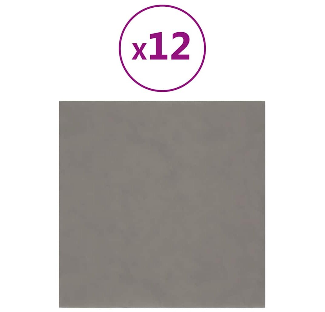 Panouri de perete 12 buc. gri deschis 30x30 cm catifea 1,08 m²