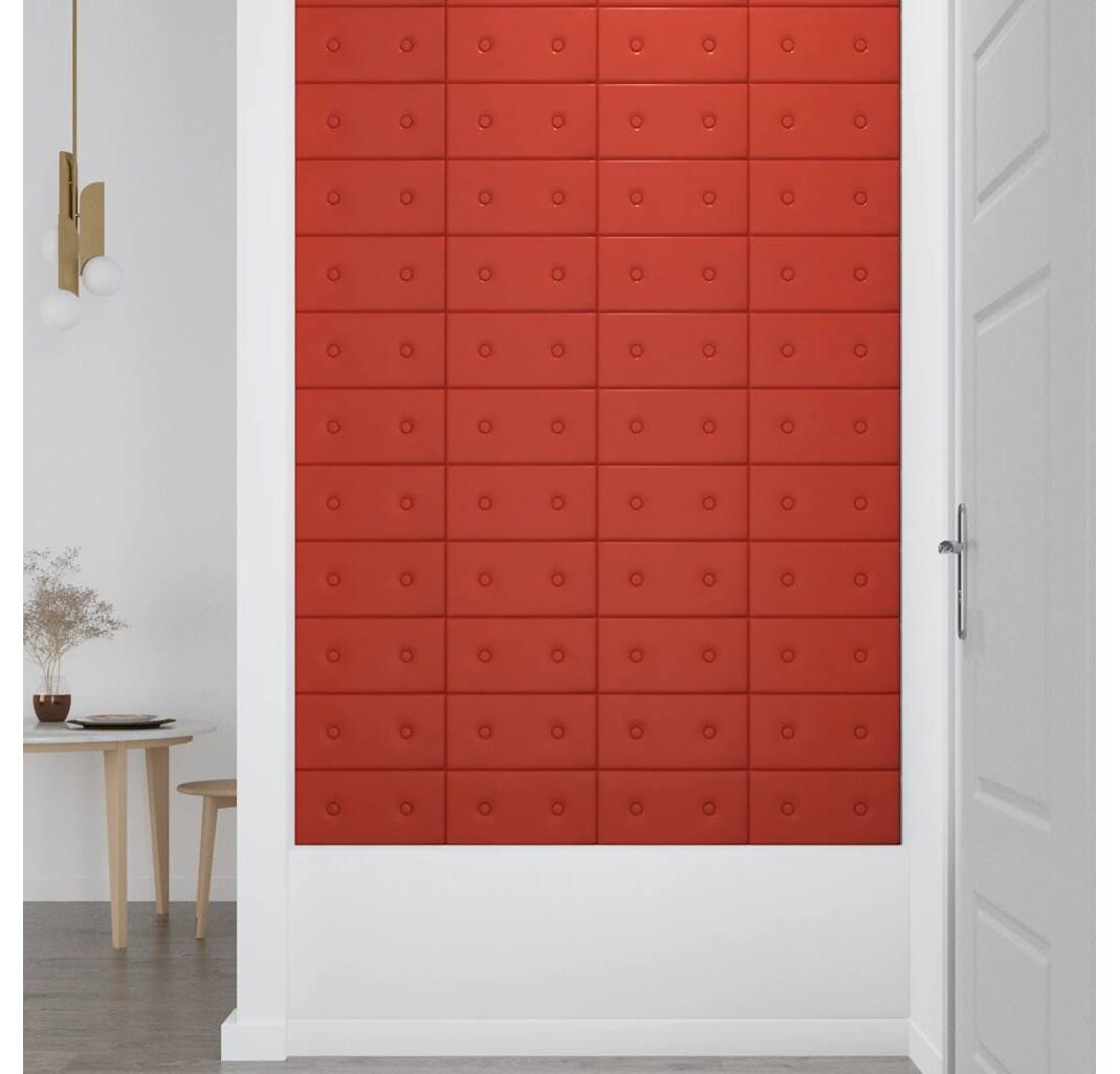 Panouri de perete 12 buc. roșu 30x15 cm piele ecologică 0,54 m²
