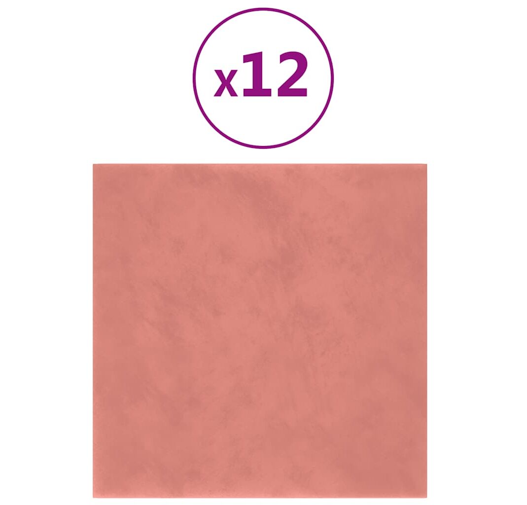 Panouri de perete 12 buc. roz 30x30 cm catifea 1,08 m²