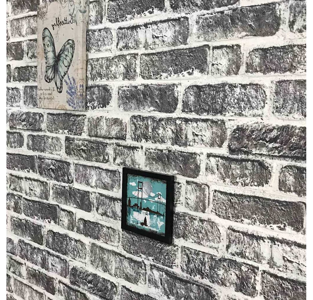 - Culoare: Gri închis cu design tip cărămidă