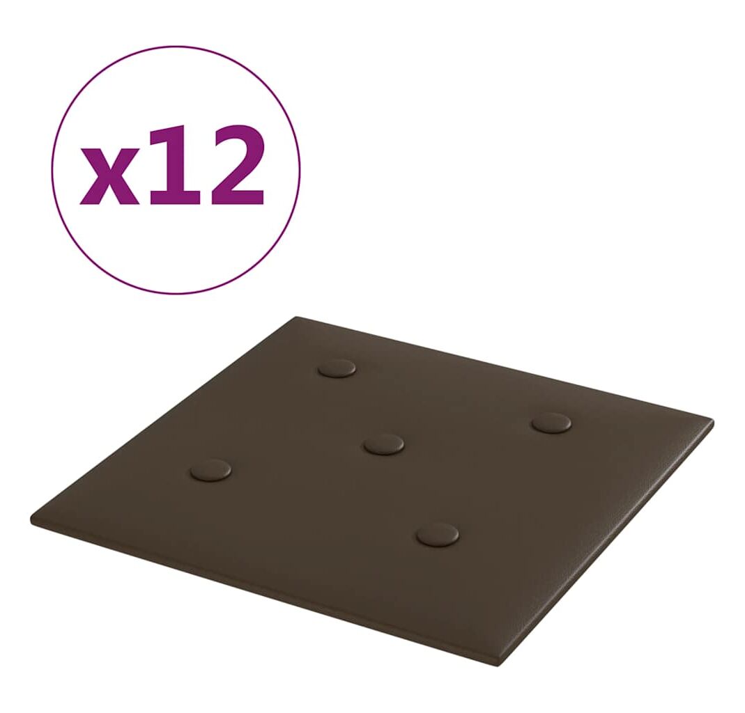 Panouri perete 12 buc. maro, 30x30 cm, piele ecologică 1,08 m²