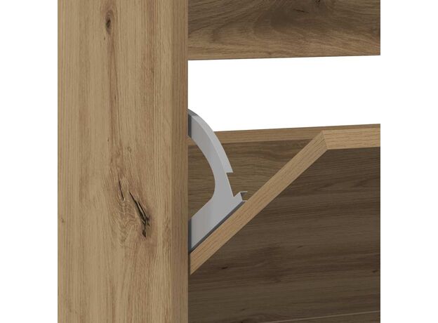 Acest raft modern pentru pantofi din stejar afumat combină depozitarea practică cu un design contemporan, oferindu-ți o modalitate faină de a-ți organiza pantofii. Finisajul său elegant și suprafața netedă îmbunătățesc aspectul holului, dormitorului sau intrării tale, păstrând totodată toate nevoile tale legate de pantofi.