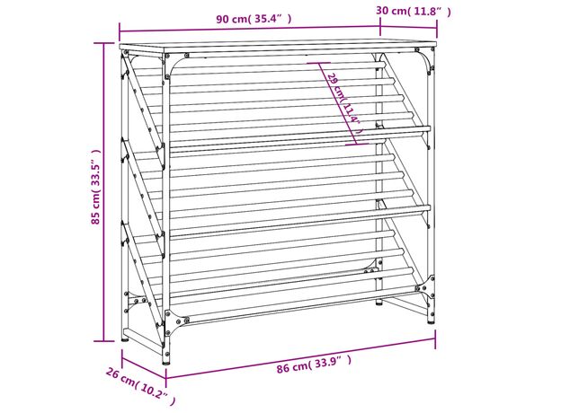 Suport de pantofi, stejar sonoma, 90x30x85 cm, lemn prelucrat