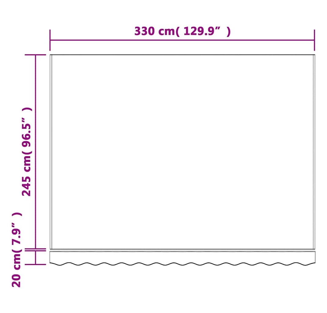 - Dimensiuni reale pânză de copertină: 330 x 245 cm (L x l)