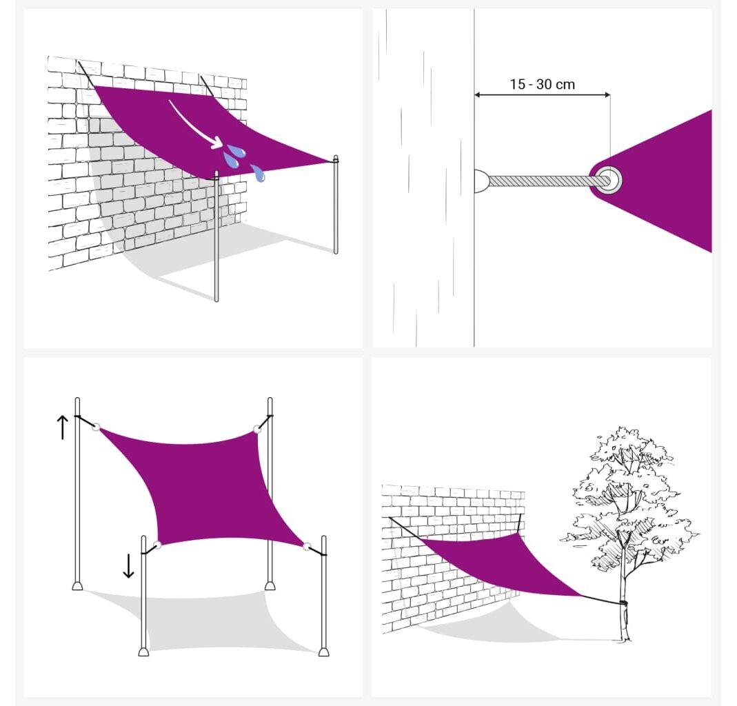Bine de știut: Instalați 2 colțuri ale pânzei mai sus decât celelalte pentru a permite apei să se scurgă.