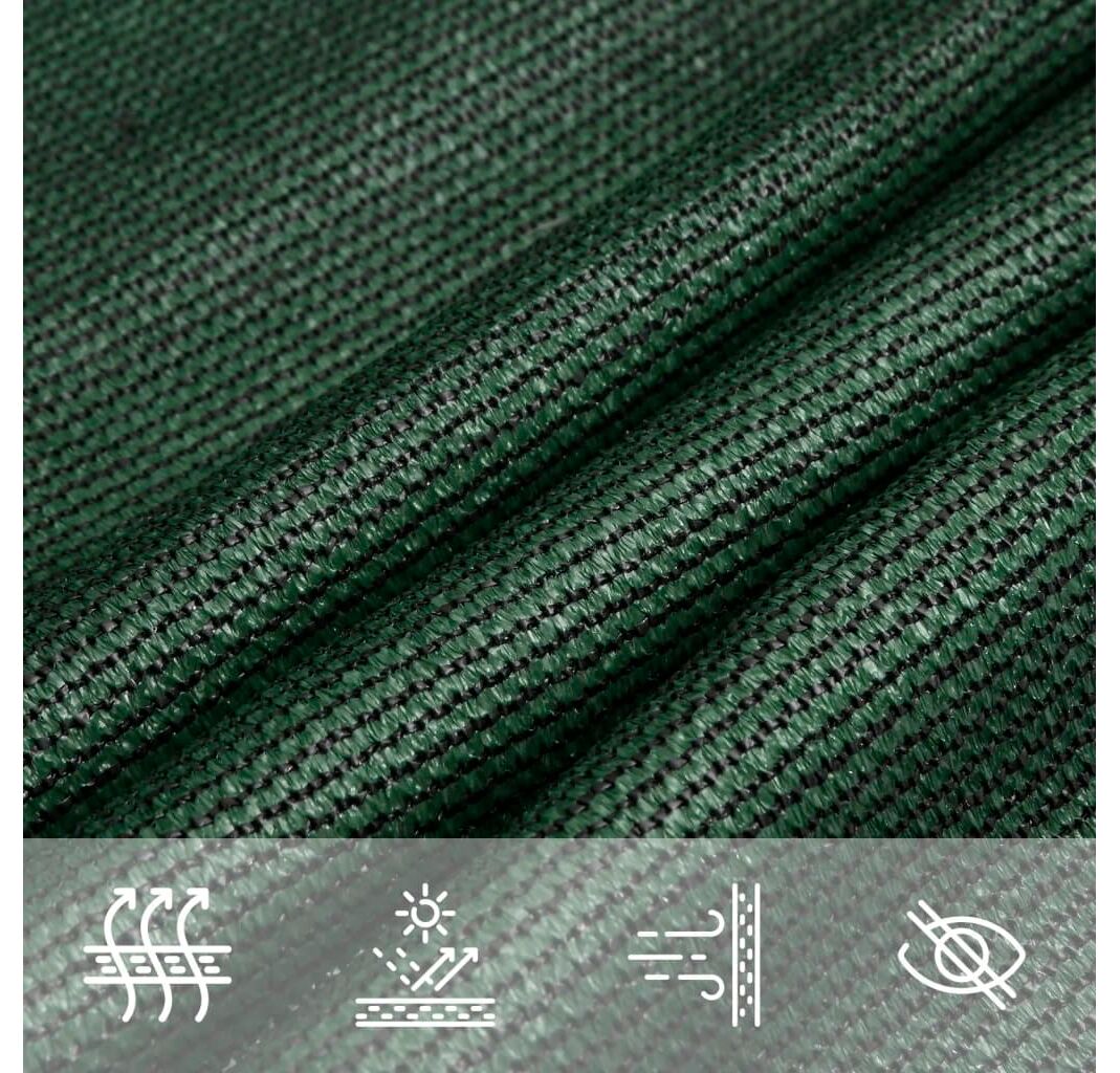 Pânza de parasolar, fabricată din HDPE 100% (polietilenă de înaltă densitate), vă protejează de lumina directă a soarelui, permite un flux suficient de aer și este permeabilă la apă. Materialul HDPE este tratat special, deci este rezistent la mucegai și la raze UV. Parasolarul este ușor de asamblat, datorită elementelor de fixare din oțel inoxidabil la fiecare colț, și a funiilor incluse.