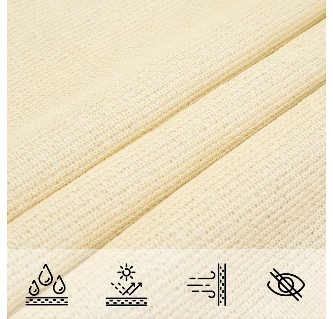 Pânza de parasolar, fabricată din HDPE 100% (polietilenă de înaltă densitate), vă protejează de lumina directă a soarelui, permite un flux suficient de aer și este permeabilă la apă. Materialul HDPE este tratat special, deci este rezistent la mucegai și la raze UV. Parasolarul este ușor de asamblat, datorită elementelor de fixare din oțel inoxidabil la fiecare colț, și a funiilor incluse.