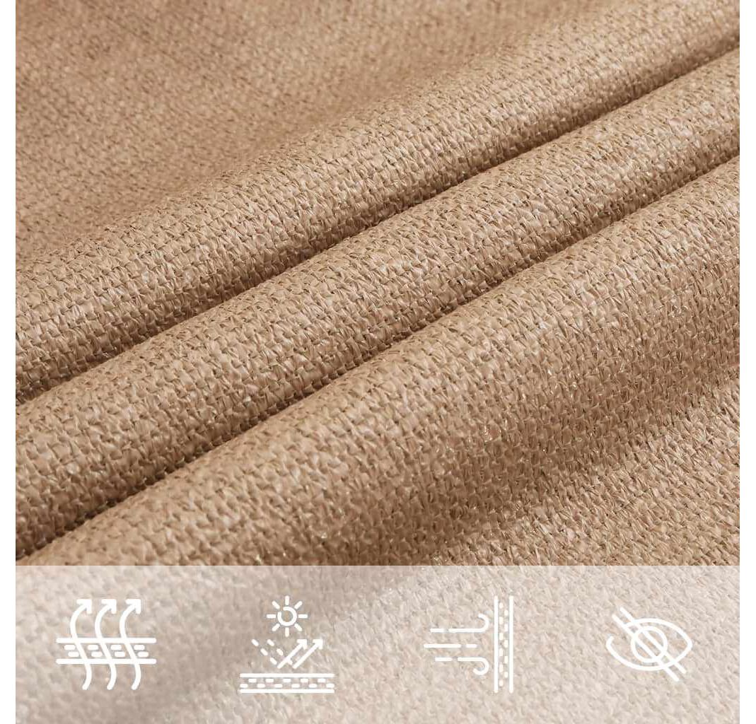 Pânza de parasolar, fabricată din HDPE 100% (polietilenă de înaltă densitate), vă protejează de lumina directă a soarelui, permite un flux suficient de aer și este permeabilă la apă. Materialul HDPE este tratat special, deci este rezistent la mucegai și la raze UV. Parasolarul este ușor de asamblat, datorită elementelor de fixare din oțel inoxidabil la fiecare colț, și a funiilor incluse.