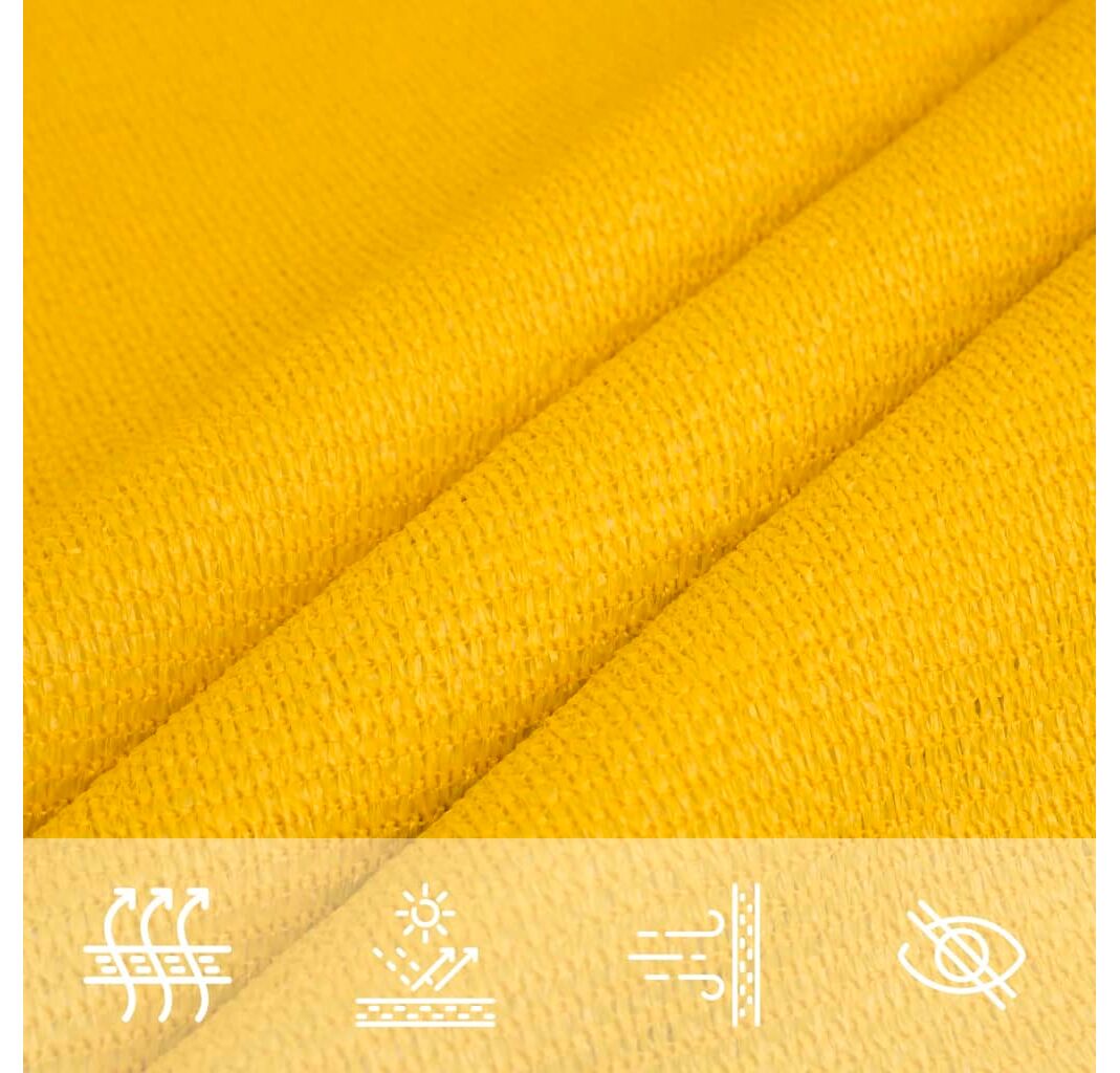 Pânza de parasolar, fabricată din HDPE 100% (polietilenă de înaltă densitate), vă protejează de lumina directă a soarelui, permite un flux suficient de aer și este permeabilă la apă. Materialul HDPE este tratat special, deci este rezistent la mucegai și la raze UV. Parasolarul este ușor de asamblat, datorită elementelor de fixare din oțel inoxidabil la fiecare colț, și a funiilor incluse.