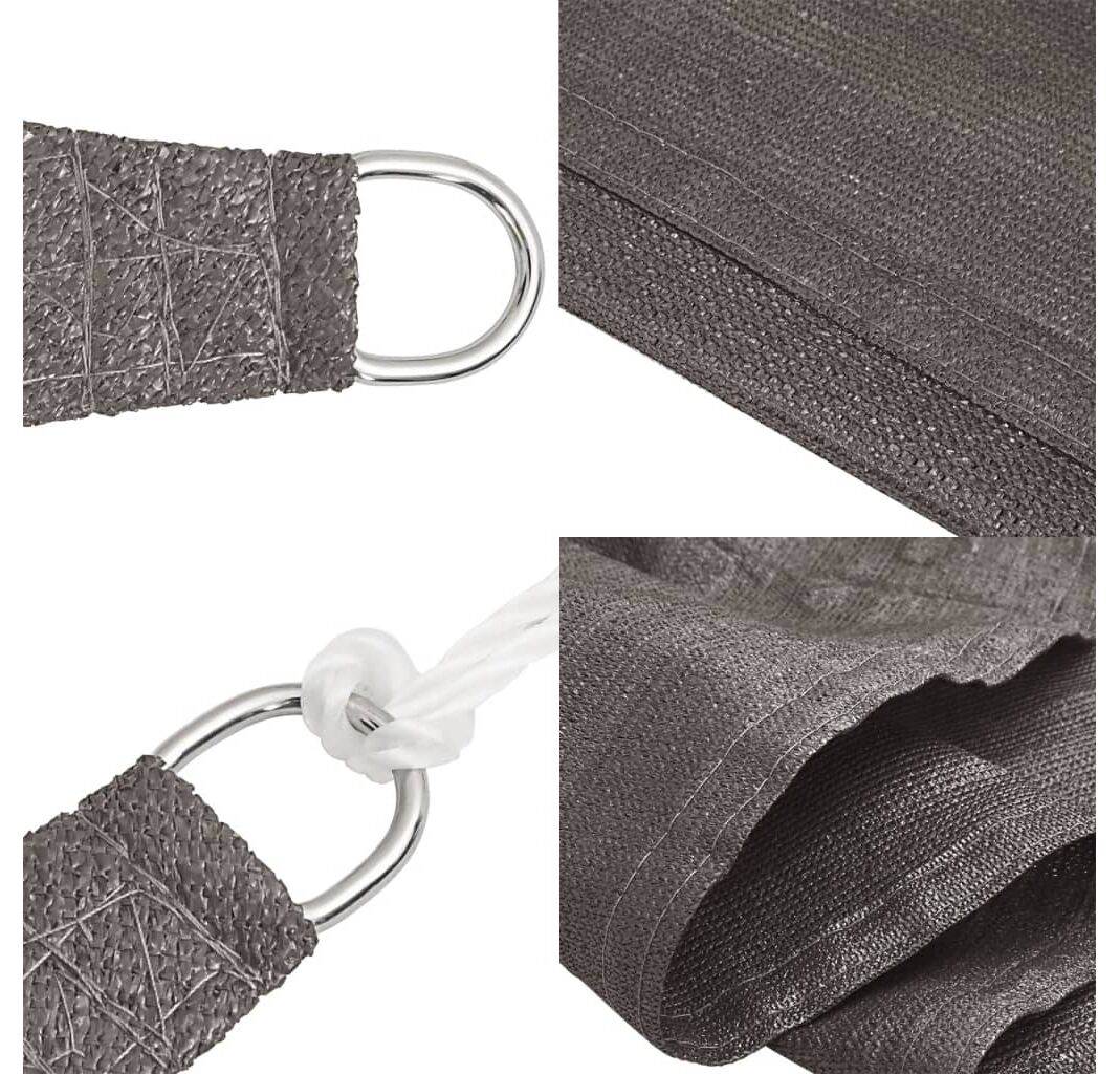 Pânza de parasolar, fabricată din HDPE 100% (polietilenă de înaltă densitate), vă protejează de lumina directă a soarelui, permite un flux suficient de aer și este permeabilă la apă. Materialul HDPE este tratat special, deci este rezistent la mucegai și la raze UV. Parasolarul este ușor de asamblat, datorită elementelor de fixare din oțel inoxidabil la fiecare colț, și a funiilor incluse.