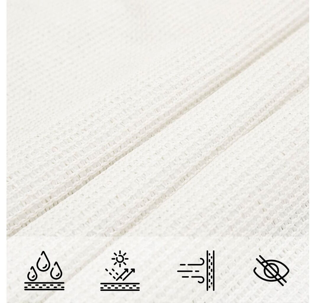 Pânza de parasolar, fabricată din HDPE 100% (polietilenă de înaltă densitate), vă protejează de lumina directă a soarelui, permite un flux suficient de aer și este permeabilă la apă. Materialul HDPE este tratat special, deci este rezistent la mucegai și la raze UV. Parasolarul este ușor de asamblat, datorită elementelor de fixare din oțel inoxidabil la fiecare colț, și a funiilor incluse.