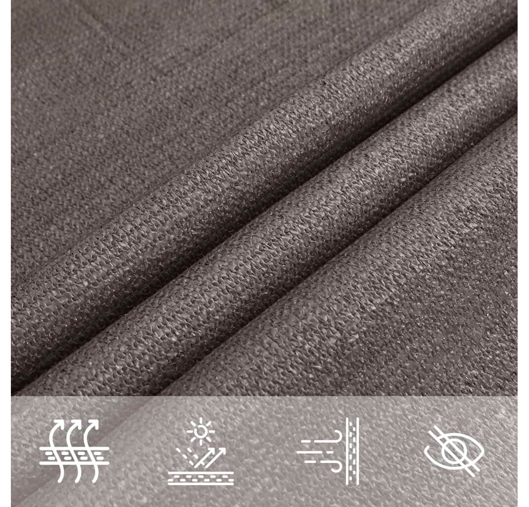 Pânza de parasolar, fabricată din HDPE 100% (polietilenă de înaltă densitate), vă protejează de lumina directă a soarelui, permite un flux suficient de aer și este permeabilă la apă. Materialul HDPE este tratat special, deci este rezistent la mucegai și la raze UV. Parasolarul este ușor de asamblat, datorită elementelor de fixare din oțel inoxidabil la fiecare colț, și a funiilor incluse.