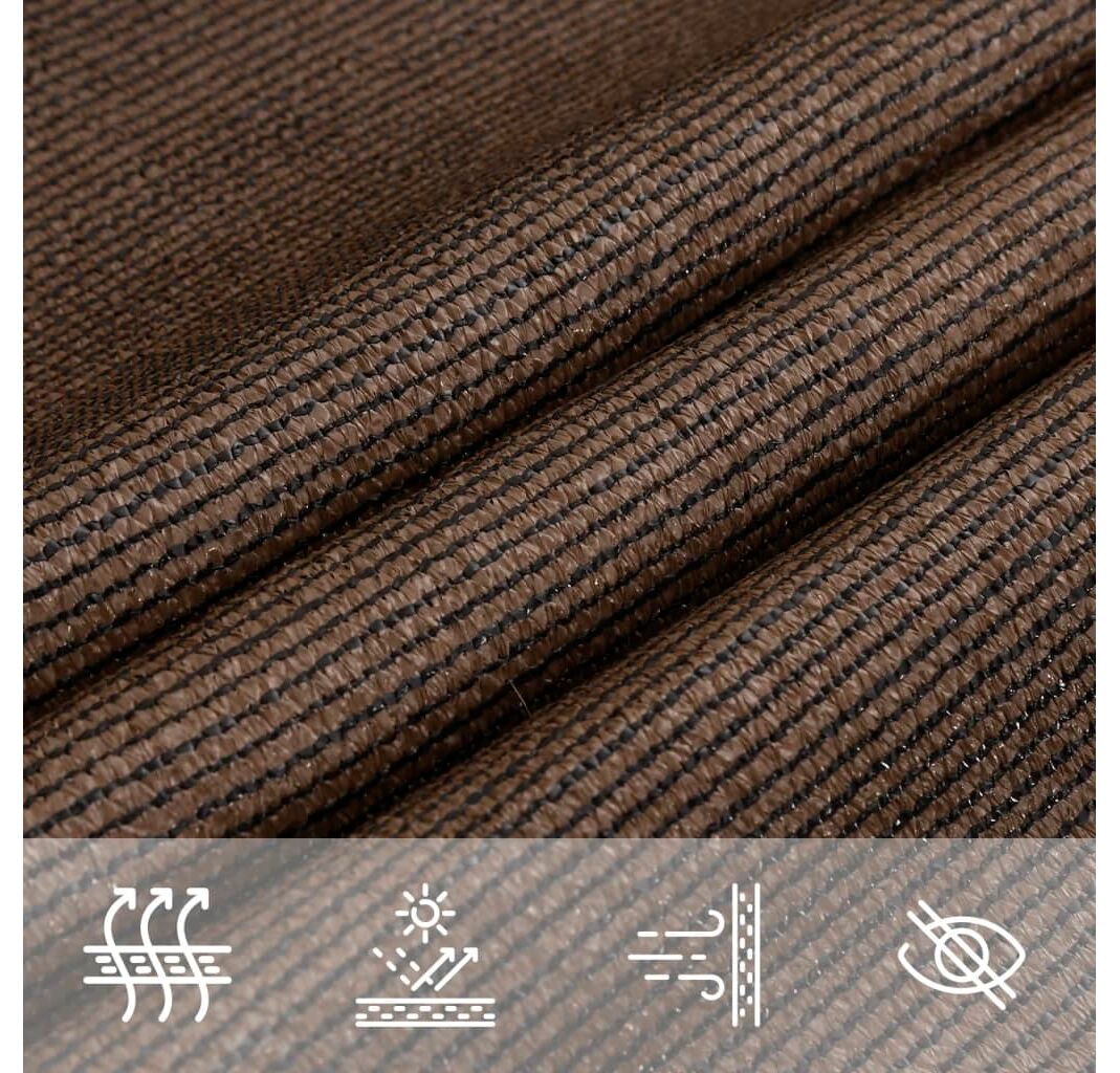 Pânza de parasolar, fabricată din HDPE 100% (polietilenă de înaltă densitate), vă protejează de lumina directă a soarelui, permite un flux suficient de aer și este permeabilă la apă. Materialul HDPE este tratat special, deci este rezistent la mucegai și la raze UV. Parasolarul este ușor de asamblat, datorită elementelor de fixare din oțel inoxidabil la fiecare colț, și a funiilor incluse.