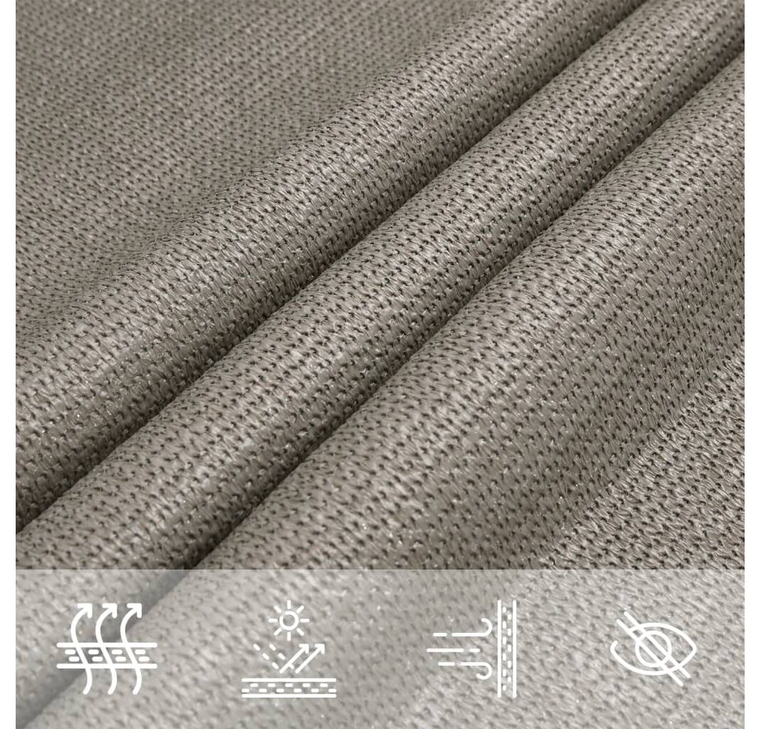Pânza de parasolar, fabricată din HDPE 100% (polietilenă de înaltă densitate), vă protejează de lumina directă a soarelui, permite un flux suficient de aer și este permeabilă la apă. Materialul HDPE este tratat special, deci este rezistent la mucegai și la raze UV. Parasolarul este ușor de asamblat, datorită elementelor de fixare din oțel inoxidabil la fiecare colț, și a funiilor incluse.