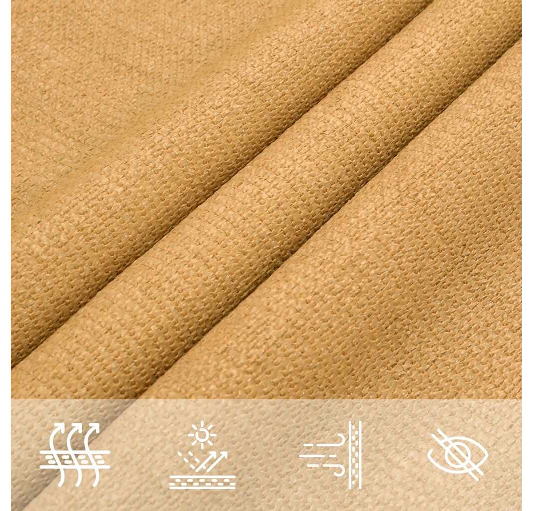 Pânza de parasolar, fabricată din HDPE 100% (polietilenă de înaltă densitate), vă protejează de lumina directă a soarelui, permite un flux suficient de aer și este permeabilă la apă. Materialul HDPE este tratat special, deci este rezistent la mucegai și la raze UV. Parasolarul este ușor de asamblat, datorită elementelor de fixare din oțel inoxidabil la fiecare colț, și a funiilor incluse.