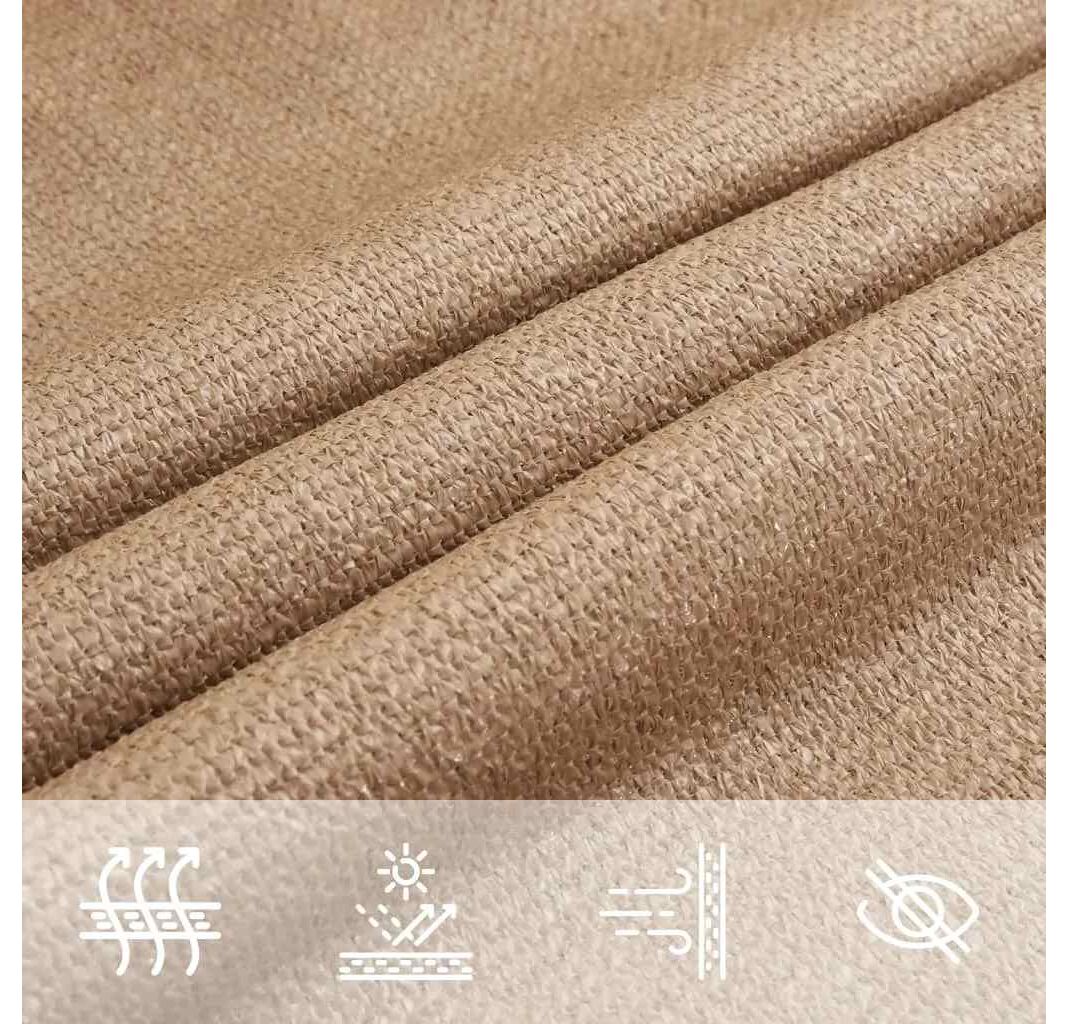 Pânza de parasolar, fabricată din HDPE 100% (polietilenă de înaltă densitate), vă protejează de lumina directă a soarelui, permite un flux suficient de aer și este permeabilă la apă. Materialul HDPE este tratat special, deci este rezistent la mucegai și la raze UV. Parasolarul este ușor de asamblat, datorită elementelor de fixare din oțel inoxidabil la fiecare colț, și a funiilor incluse.
