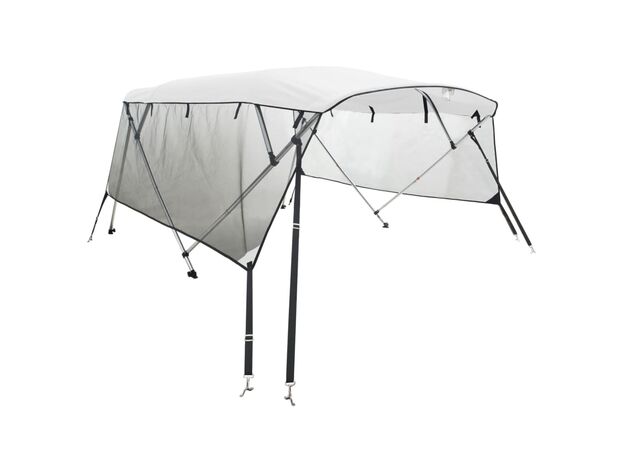 Acest parasolar bimini cu 4 arcuri și pereți laterali, joacă un rol eficient în a vă proteja de lumina directă a soarelui și de condițiile meteorologice dure, cum ar fi grindina sau ploaia.