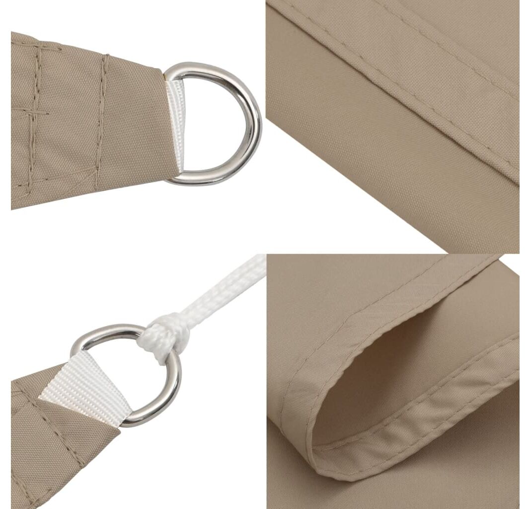 Acest parasolar este ușor de asamblat datorită elementelor de fixare din oțel inoxidabil de pe fiecare colț și a funiilor incluse.