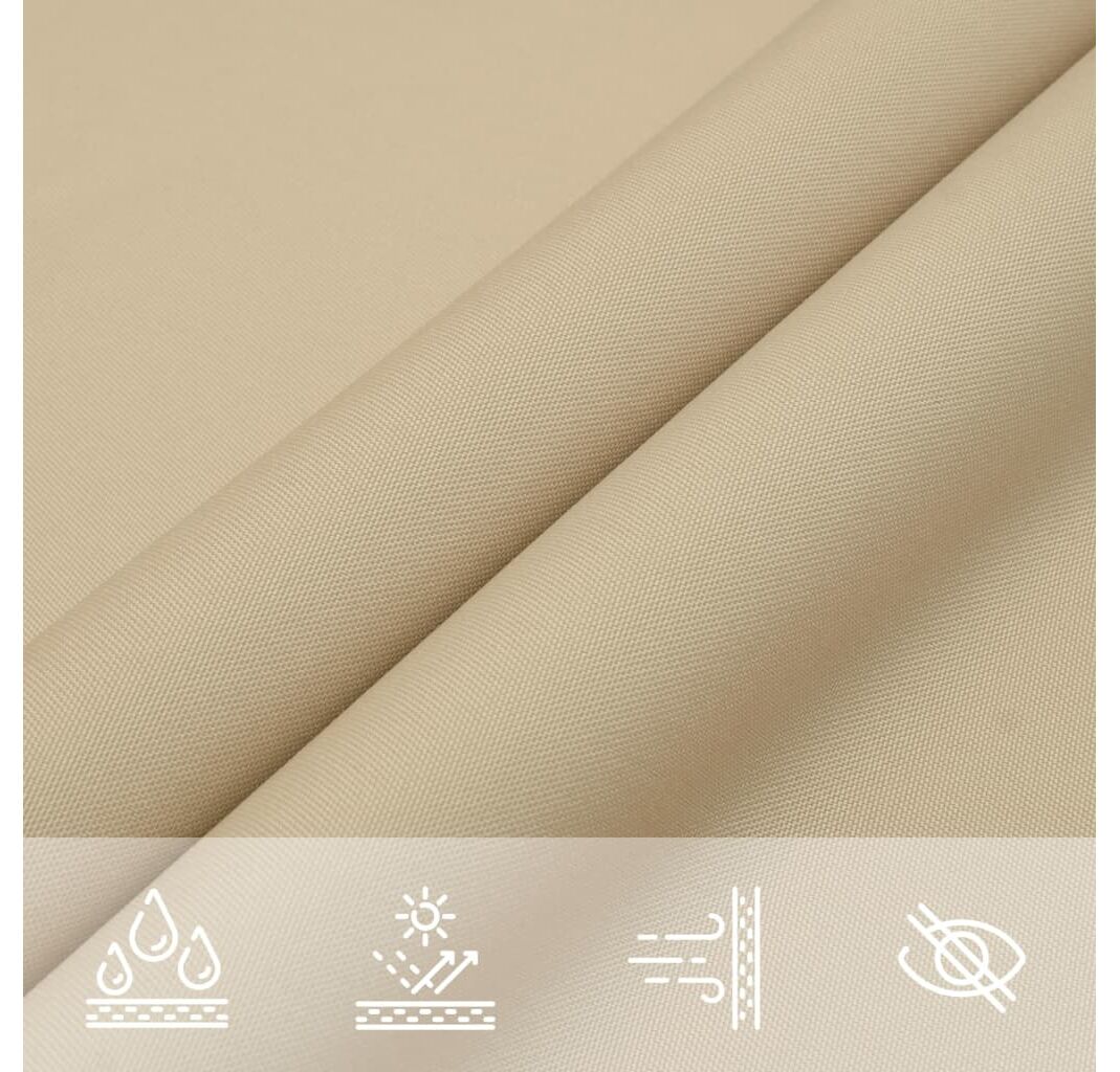 Realizat din țesătură oxford cu înveliș PU, parasolarul vă va proteja de lumina directă a soarelui și de ploaie. Țesătura este special tratată, astfel încât să ofere rezistență la mucegai și la raze UV.