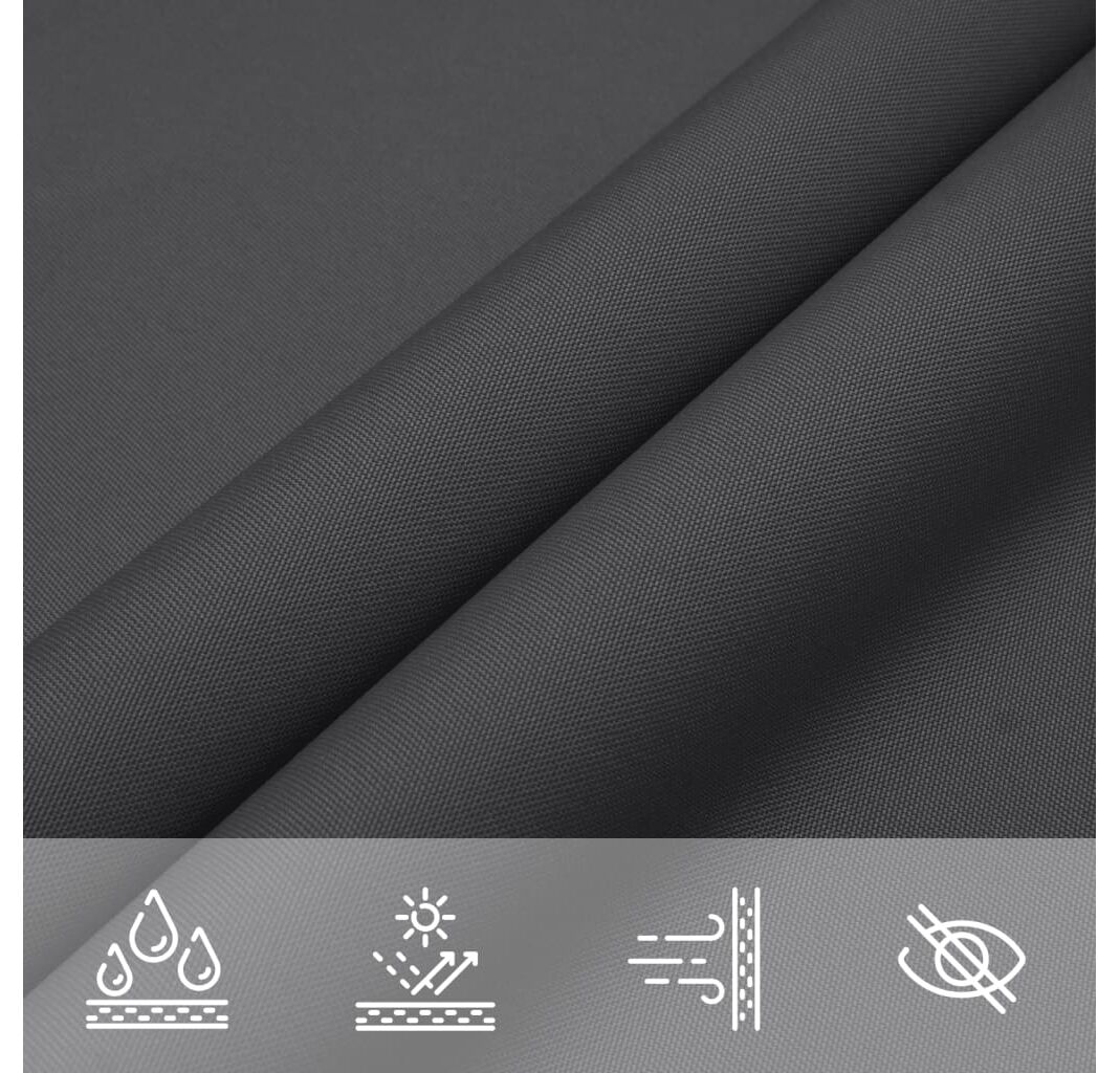 Realizat din țesătură oxford cu înveliș PU, parasolarul vă va proteja de lumina directă a soarelui și de ploaie. Țesătura este special tratată, astfel încât să ofere rezistență la mucegai și la raze UV.