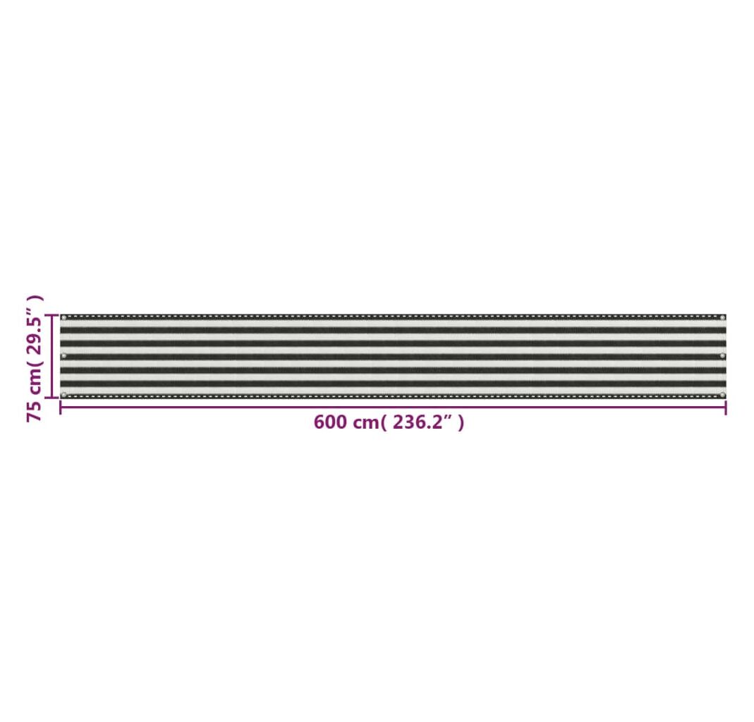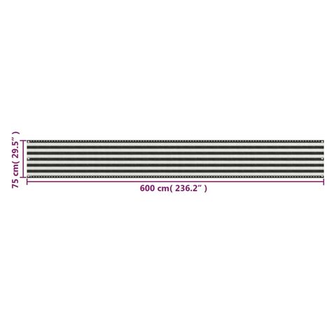 Prelată pentru balcon din HDPE, 75 x 600 cm, antracit și alb