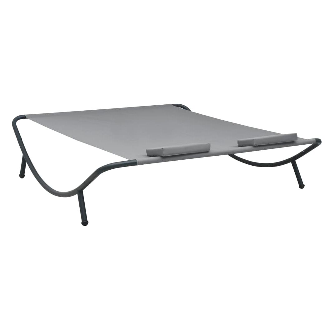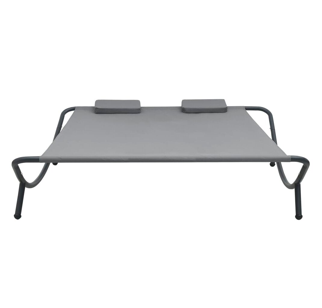 Fabricat din țesătură oxford rezistentă la intemperii, patul de plajă poate fi folosit în aer liber, pe tot parcursul anului. Cadrul din oțel vopsit electrostatic adaugă un plus de stabilitate și asigură șezlongului o durată lungă de viață. De asemenea, acest șezlong este livrat cu două perne foarte confortabile, căptușite în strat gros, pentru un confort desăvârșit. Husele de pernă din poliester, ce necesită doar un minim de întreținere, pot fi îndepărtate și spălate. Acest șezlong este ușor de asamblat.