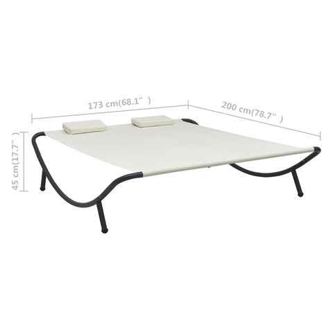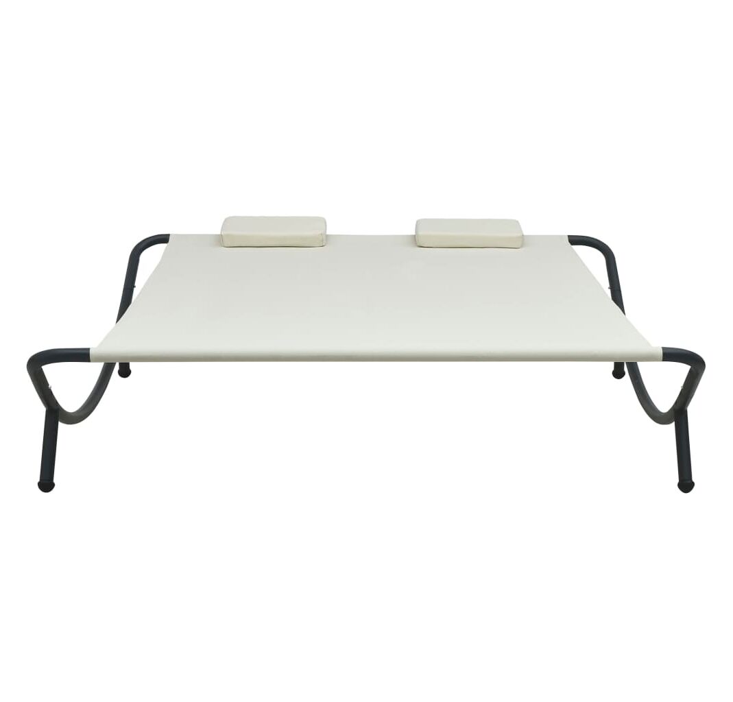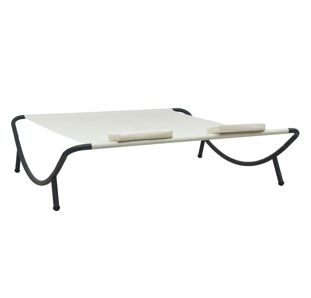 Fabricat din țesătură oxford rezistentă la intemperii, patul de plajă poate fi folosit în aer liber, pe tot parcursul anului. Cadrul din oțel vopsit electrostatic adaugă un plus de stabilitate și asigură șezlongului o durată lungă de viață. De asemenea, acest șezlong este livrat cu două perne foarte confortabile, căptușite în strat gros, pentru un confort desăvârșit. Husele de pernă din poliester, ce necesită doar un minim de întreținere, pot fi îndepărtate și spălate. Acest șezlong este ușor de asamblat.
