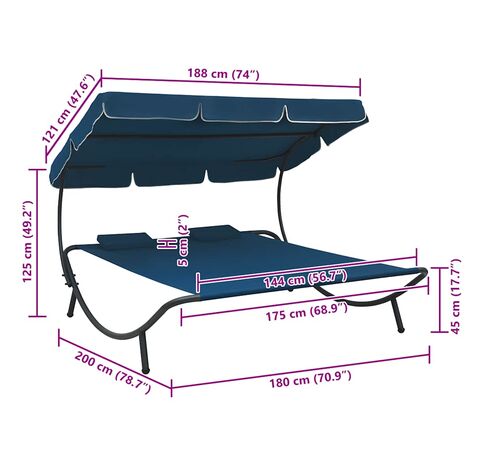 Acest pat șezlong dublu, care include 2 perne și un baldachin mare, va fi un punct de atracție indiferent de locul unde va fi amplasat. Este o alegere perfectă pentru a vă relaxa sau distra cu familia în grădină, curte, pe terasă sau la plajă.