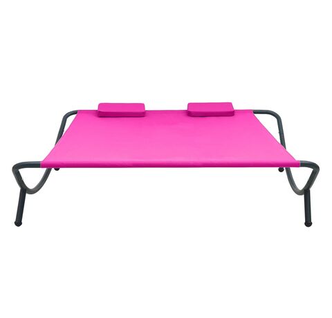 Fabricat din țesătură oxford rezistentă la intemperii, patul de plajă poate fi folosit în aer liber, pe tot parcursul anului. Cadrul din oțel vopsit electrostatic adaugă un plus de stabilitate și asigură șezlongului o durată lungă de viață. De asemenea, acest șezlong este livrat cu două perne foarte confortabile, căptușite în strat gros, pentru un confort desăvârșit. Husele de pernă din poliester, ce necesită doar un minim de întreținere, pot fi îndepărtate și spălate. Acest șezlong este ușor de asamblat.