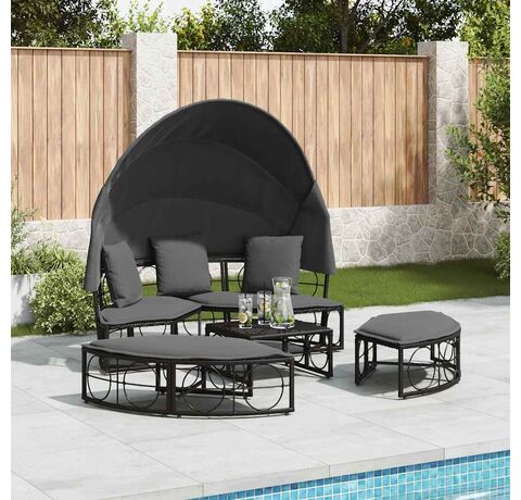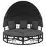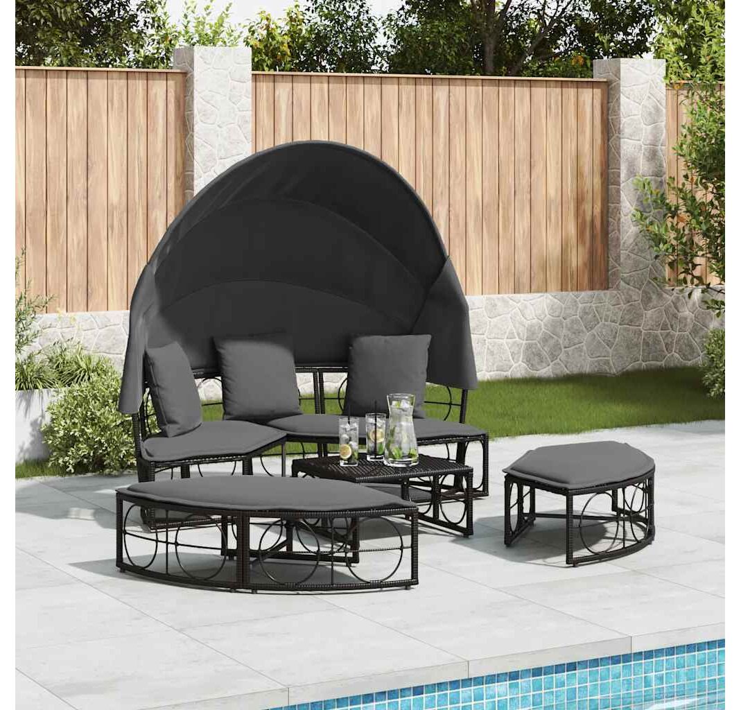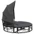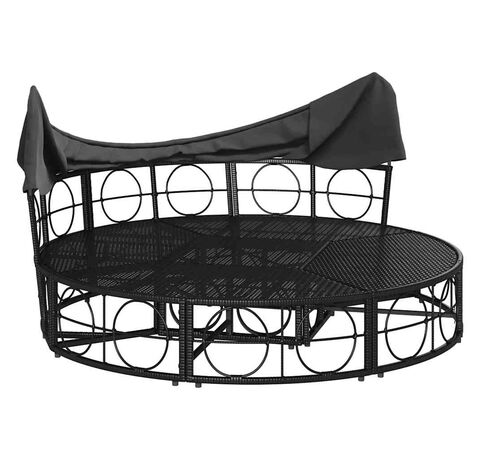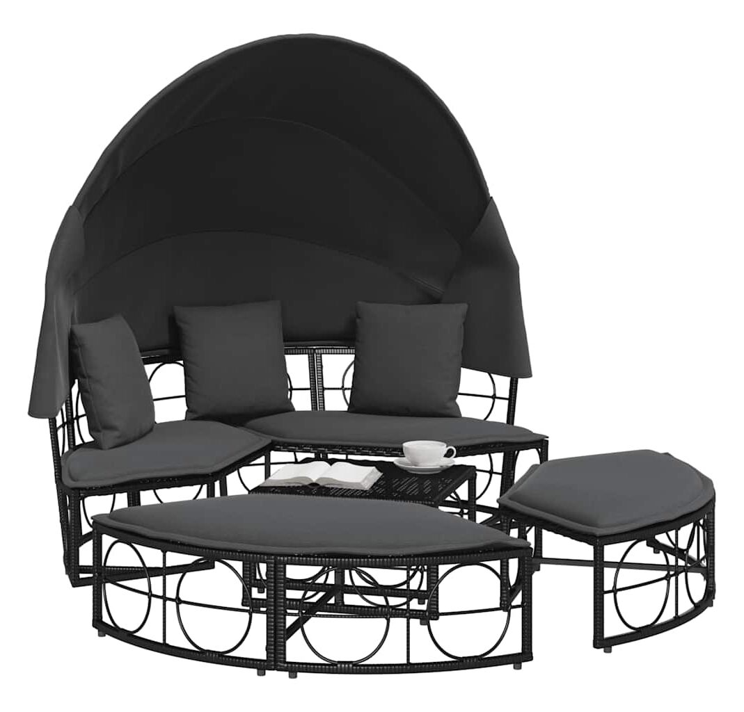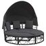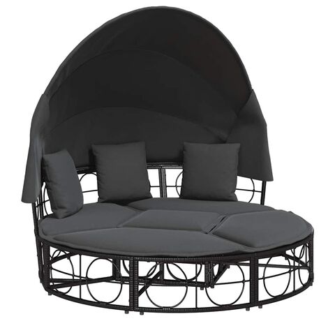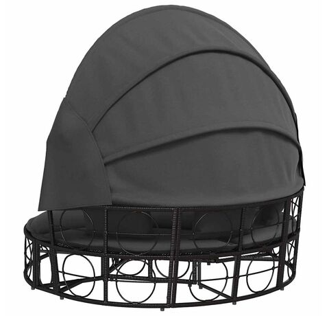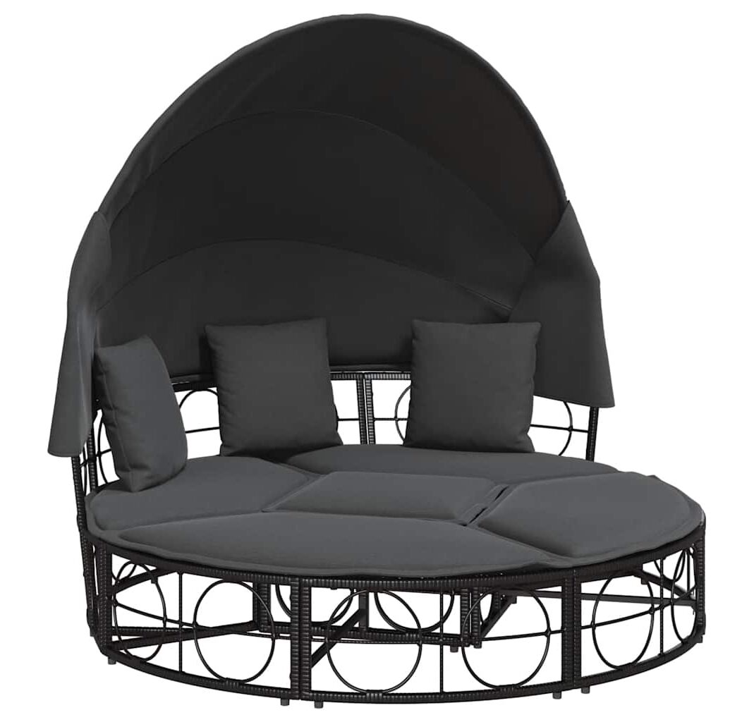 Pat șezlong pentru exterior cu baldachin, negru, poliratan