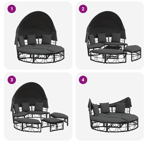 • Design modular: Acest pat de grădină modular poate fi aranjat ca o insulă rotundă de soare sau separat într-un set de conversație cu o masă și mai multe locuri, oferind locuri flexibile pentru relaxare pentru tine și prietenii tăi.