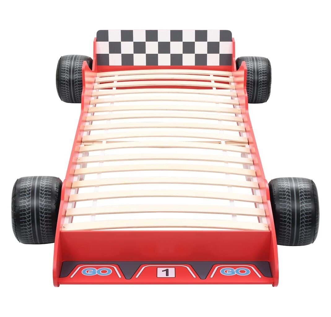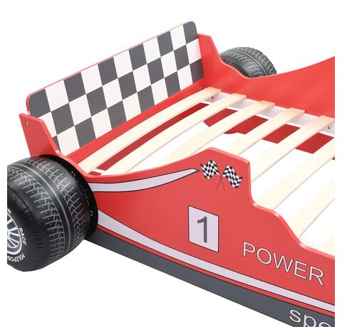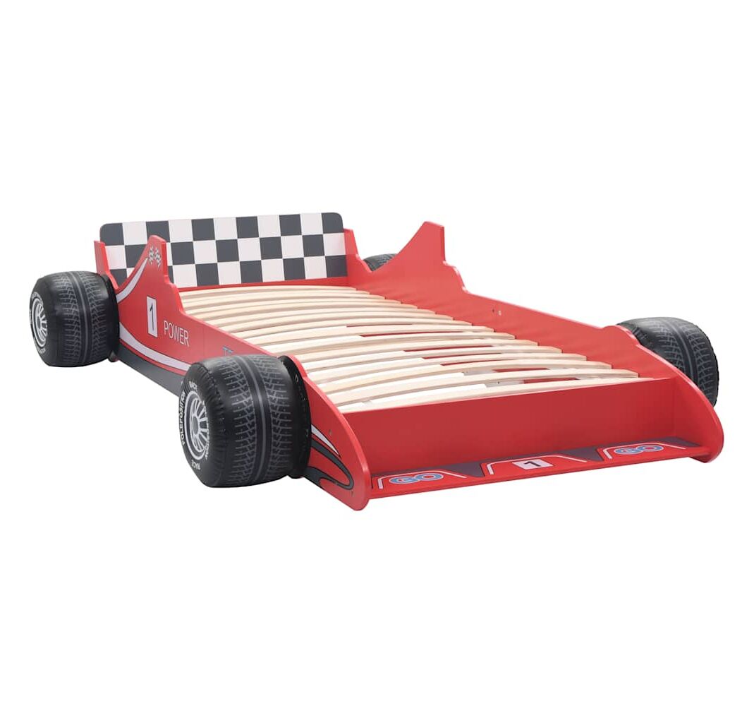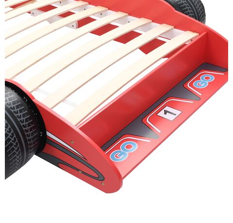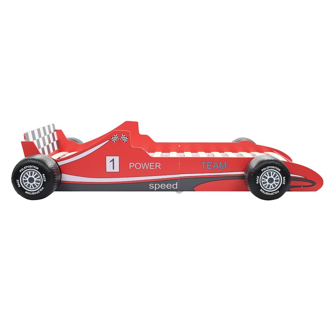 Pat pentru copii mașină de curse, roșu, 90 x 200 cm