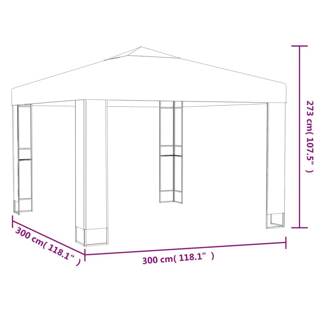 Pavilionul este realizat din oțel vopsit electrostatic. Prin urmare, este foarte robust și durabil. Foișorul nostru are acoperiș dublu. De asemenea, este realizat din poliester 100% cu înveliș din PA, rezistent la apă. Îl puteți îndepărta pentru spălare sau depozitare, atunci când nu îl utilizați.
