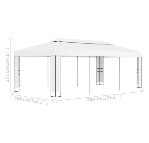 Pavilion cu acoperiș dublu, alb, 3 x 6 m