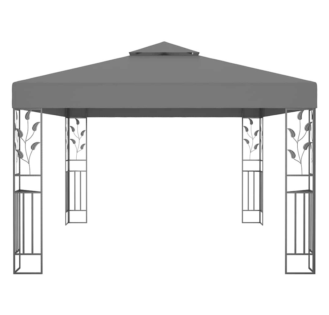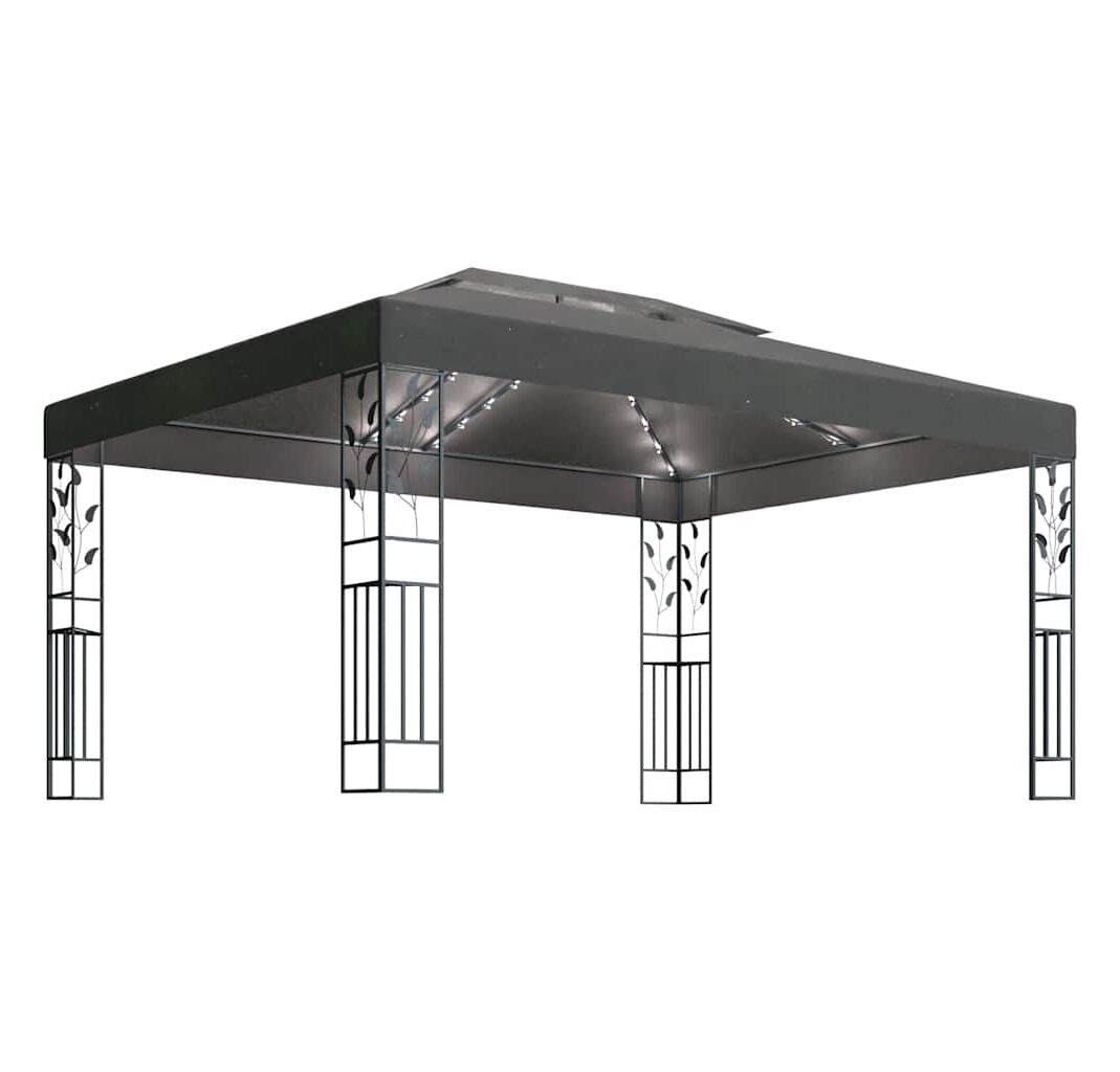 Pavilion cu acoperiș dublu&șiruri de lumini LED,antracit, 3x4 m