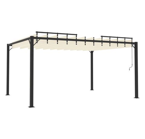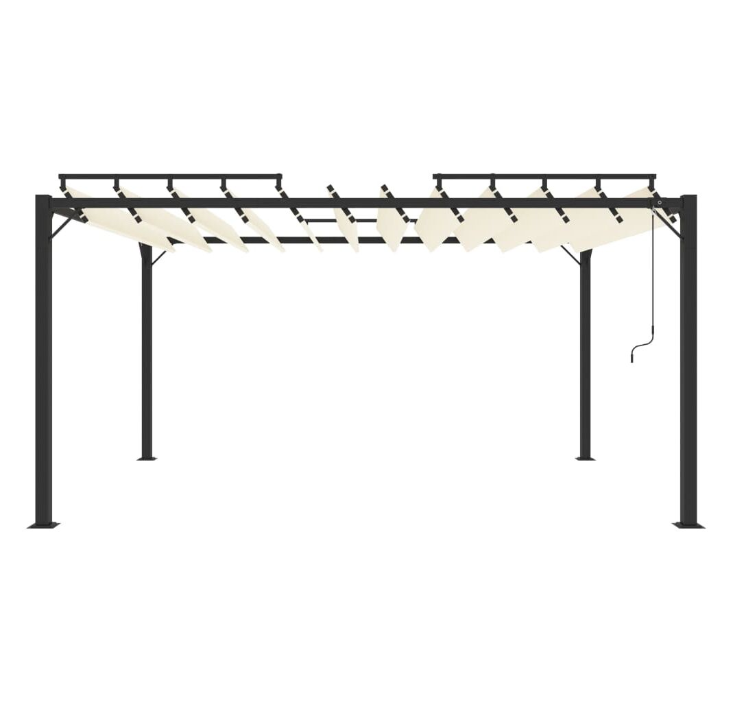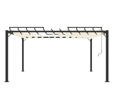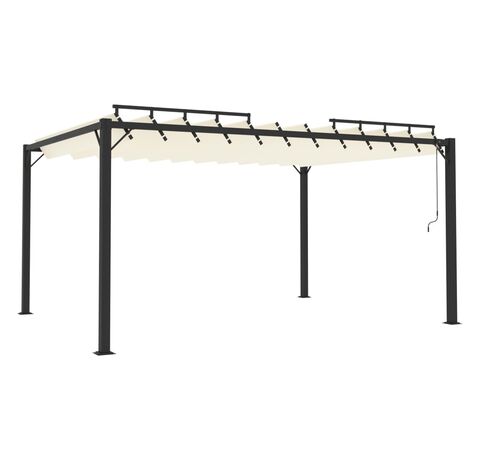 Acest pavilion este fabricat din țesătură cu înveliș din PA, rezistentă la apă și murdărie. Cadrul rezistent din aluminiu face ca acest foișor să fie robust și foarte durabil. Acest foișor este echipat cu un acoperiș reglabil cu jaluzea. Puteți roti și regla ușor jaluzelele în poziția ideală prin simpla scuturare a stâlpului de mână. Deschideți jaluzelele atunci când doriți să vă bucurați de soare și închideți-le din nou pentru umbră sau pentru a vă proteja un pic de ploaie. Acest foișor este o alegere perfectă pentru activitățile în aer liber.