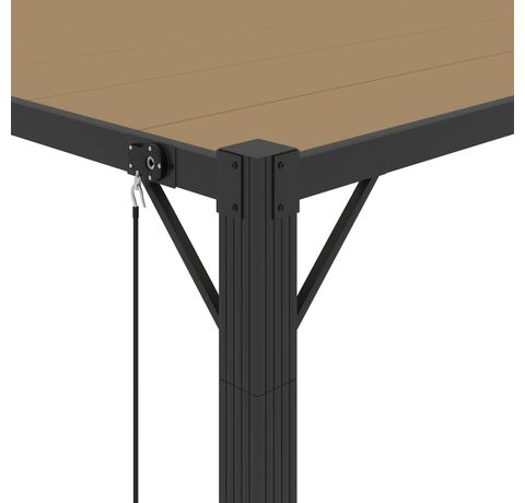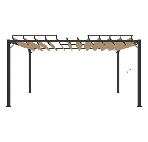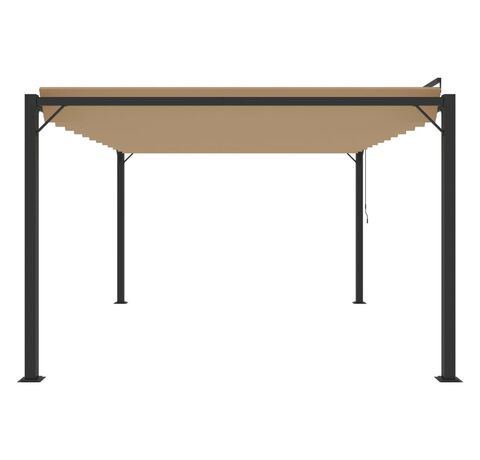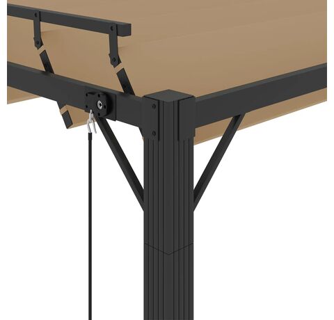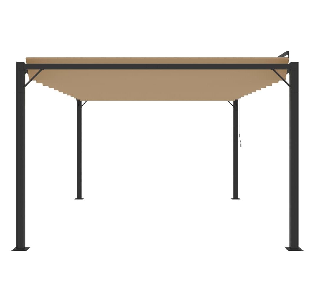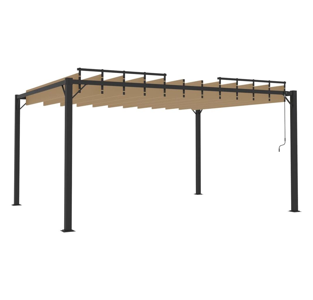 Acest pavilion este fabricat din țesătură cu înveliș din PA, rezistentă la apă și murdărie. Cadrul rezistent din aluminiu face ca acest foișor să fie robust și foarte durabil. Acest foișor este echipat cu un acoperiș reglabil cu jaluzea. Puteți roti și regla ușor jaluzelele în poziția ideală prin simpla scuturare a stâlpului de mână. Deschideți jaluzelele atunci când doriți să vă bucurați de soare și închideți-le din nou pentru umbră sau pentru a vă proteja un pic de ploaie. Acest foișor este o alegere perfectă pentru activitățile în aer liber.