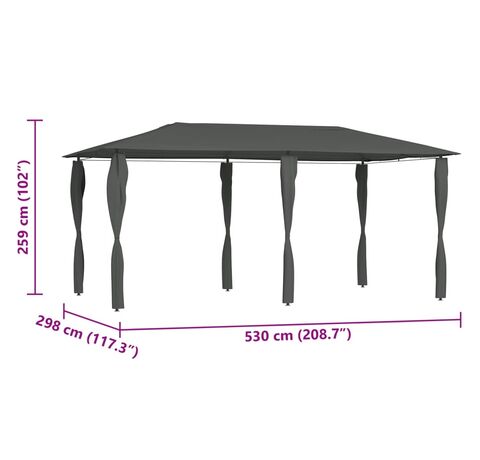 Acest pavilion are o construcție solidă din oțel, ceea ce îl face rezistent și robust, pentru utilizare în exterior. Acoperișul oferă protecție împotriva ploii și a soarelui arzător, astfel încât să vă puteți bucura de spațiul de exterior, fără griji.